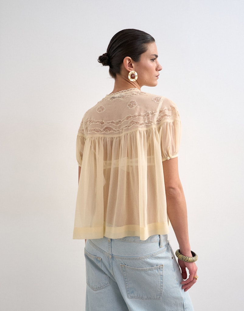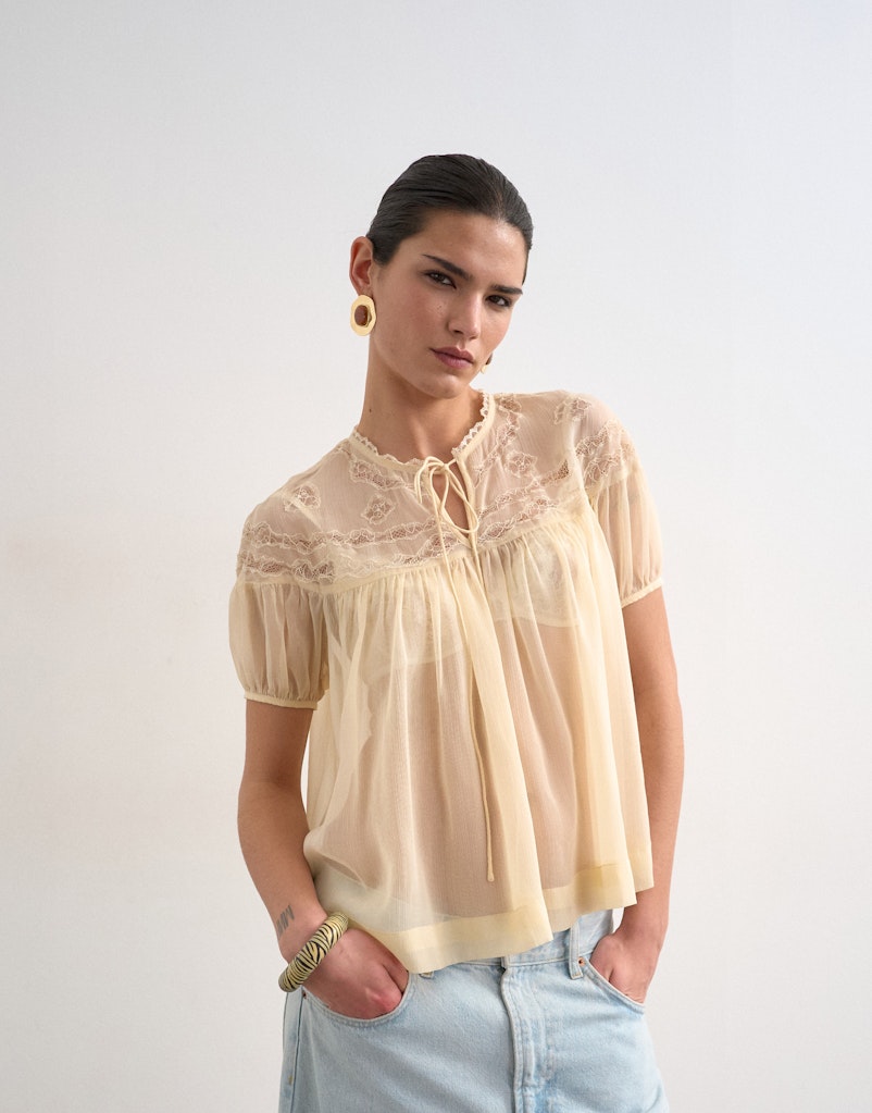 TSLAYLA SS LACE TOP WVN