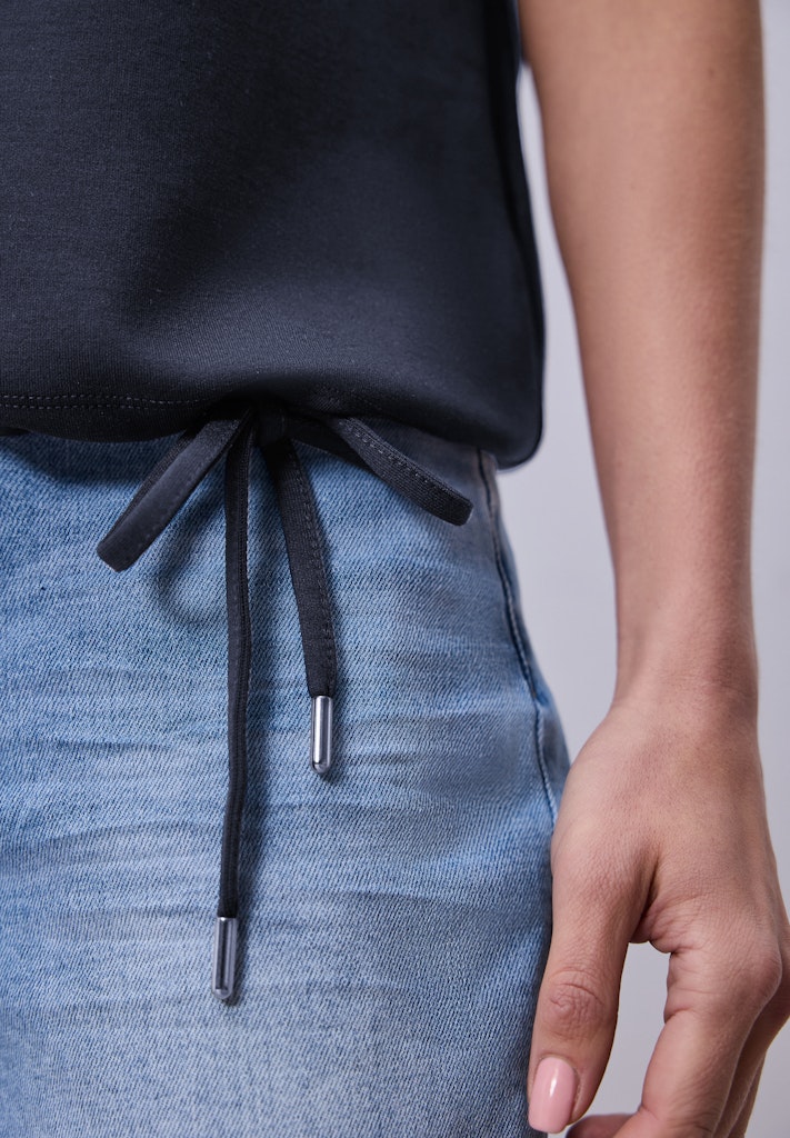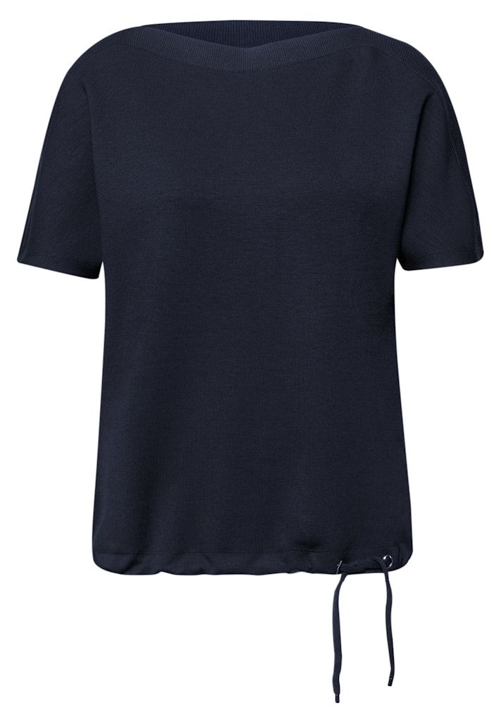 Das unifarbene Shirt von Street One überzeugt mit modernen Details wie Rippstrukturen an den Schultern und einem verstellbaren Tunnelzug am Saum. Der U-Boot-Ausschnitt und die lässigen Dropped Shoulders verleihen dem Jerseyshirt einen bequemen, leicht fließenden Fit. Der softe Viskosemix mit Stretchanteil sorgt für ein angenehmes Hautgefühl. Ein unkomplizierter Begleiter für feminine Casual-Looks. Jerseyshirt Casual U-Boot-Ausschnitt Dropped Shoulders Bequem Material: 48% Viskose, 48% Polyester, 4% Elasthan