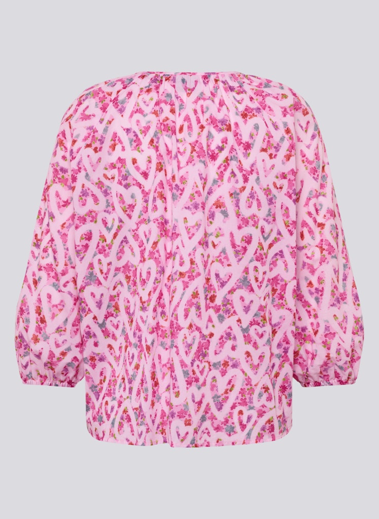 Diese Bluse aus 100 % Baumwolle trägt sich angenehm leicht und bietet dank der natürlichen Faser ein hautfreundliches Tragegefühl. Der lockere Schnitt mit leicht gerafftem Rundhalsausschnitt und Bindeband unterstreicht die feminine Note. Die 3/4-Ärmel mit sanfter Weite sorgen für eine entspannte Silhouette. Ideal für frische, unkomplizierte Looks im Alltag. 100 % Baumwolle. Luftige, leichte Qualität. Rundhals mit Bindeband. 3/4-Ärmel mit Weite. Lockere Passform.