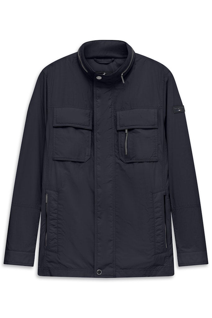 Jacke mit Stehkragen und einrollbarer Kapuze. Aufgesetzte Pattentaschen auf der Brust, eine davon mit Reißverschluss, sowie Leistentaschen mit Reißverschluss. Steppnähte an Ärmel und Rumpf. Die sportliche Vollfütterung setzt Akzente nach Innen. Der Artikel überzeugt mit seinem Griff und ist gleichzeitig wasserabweisend und PFC frei.