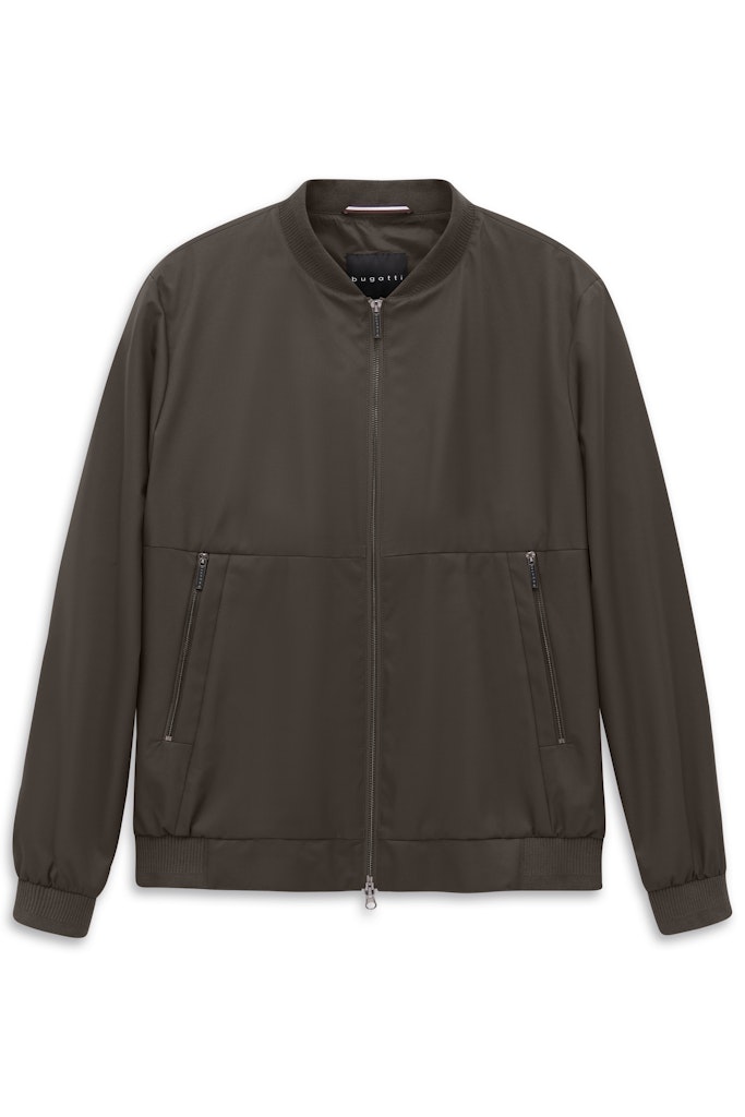Schlichter Blouson mit Collagekragen. Zwei Seitentaschen mit Reißverschluss. Seitliches Strickbündchen am Saum und komplett am Ärmelabschluss. Monochrome Vollfütterung mit farblichen Akzenten an den Innentaschen. Der Artikel überzeugt durch seine feine Struktur und seine wasserabweisende Ausrüstung.