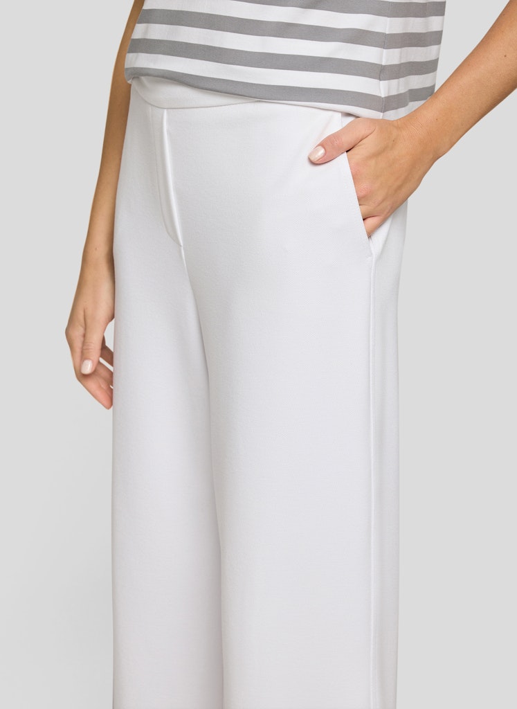 Diese Schlupfhose verbindet Komfort und moderne Lässigkeit in einer klaren Silhouette. Der elastische Bund sorgt für ein angenehmes Tragegefühl und einfaches Anziehen, während das weite, gerade Bein locker fällt und Bewegungsfreiheit bietet. Das glatte Material mit Viskoseanteil wirkt weich, formstabil und leicht fließend. Seitliche Eingrifftaschen ergänzen die praktische Ausstattung und runden den entspannten Look ab. Elastischer Schlupfbund. Weites, gerades Bein. Seitliche Eingrifftaschen. Weich fließende Qualität. Stretchkomfort.