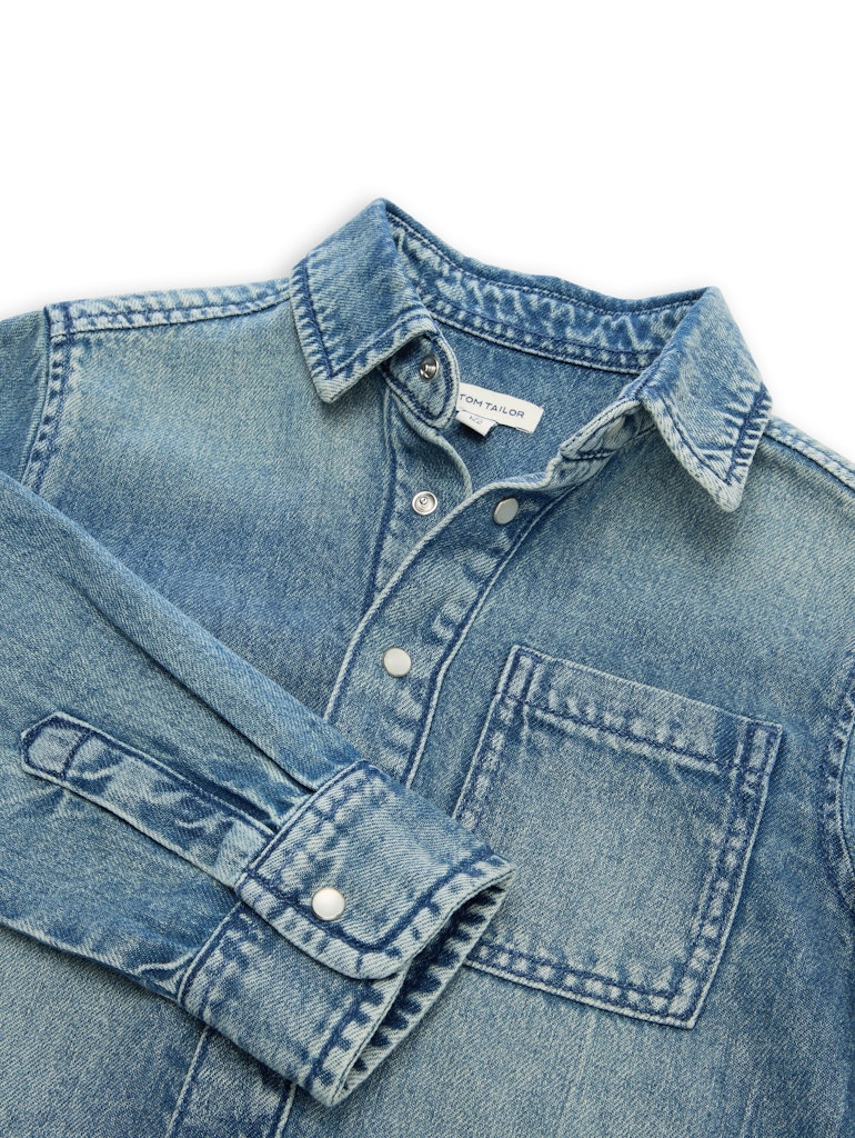 Regular Fit Jeanshemd mit Hemdkragen und aufgesetzter Brusttasche. Mit Druckknopfleiste für ein einfaches An- und Ausziehen.