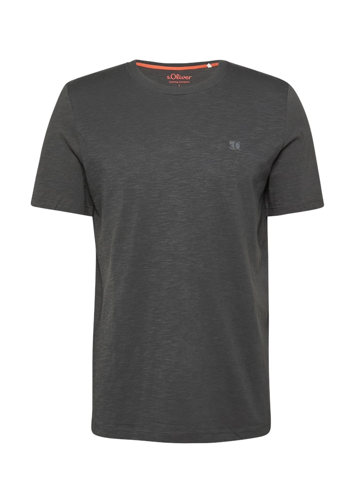 T-Shirt in Flammgarnstruktur mit Logo-Detail
