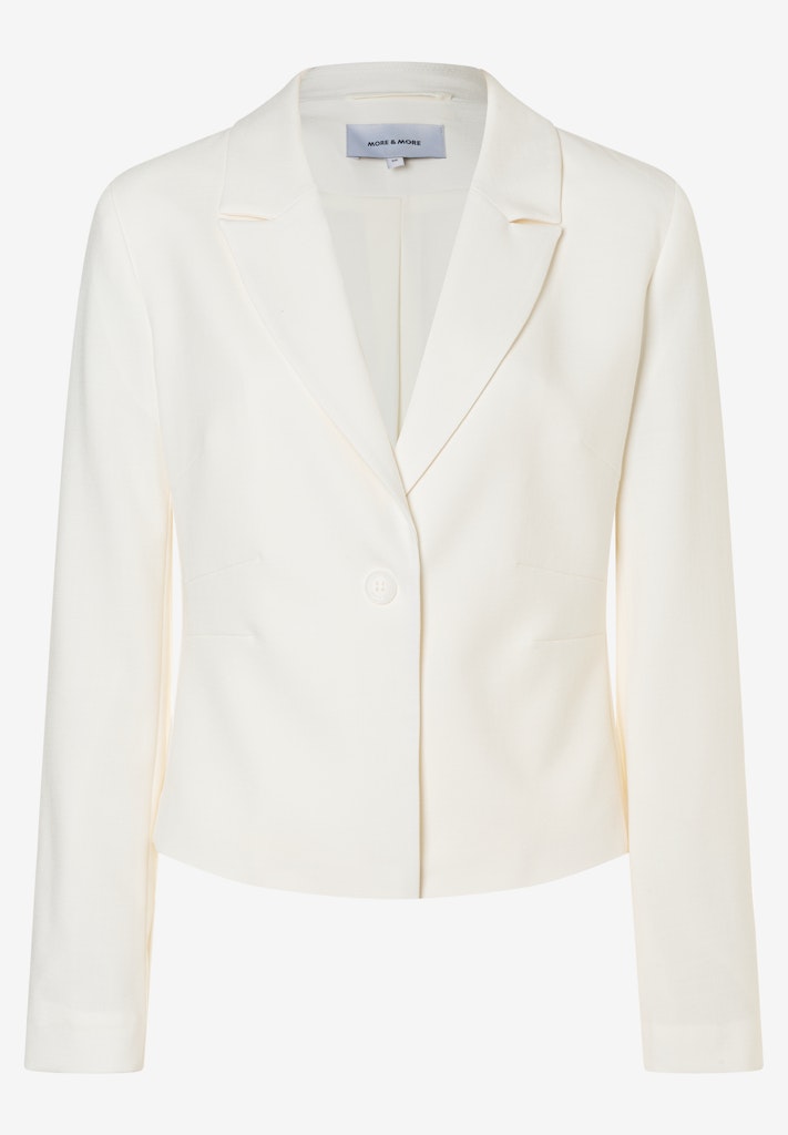 Der stilvolle 1-Knopf-Blazer von MORE & MORE in tailliertem Shape lässt sich vielseitig kombinieren und setzt mit femininem Faltendetail in der Taille modische Akzente. Mit passender Anzughose kann der Kurzblazer zu einem sommerlichen Business-Outfit gestylt werden. Er funktioniert aber genauso gut zu femininen Kleidern und Röcken, oder auch im Stilbruch mit verwaschener Jeans und verleiht jedem Look eine elegante Note.