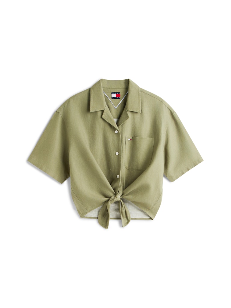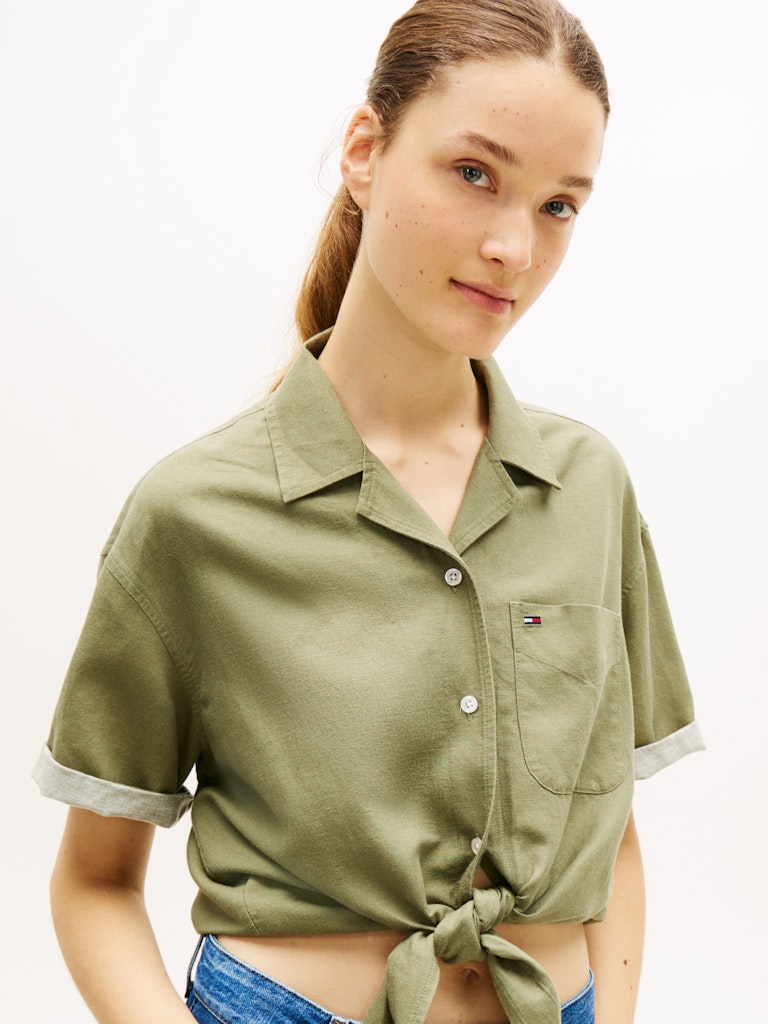 Relaxed Fit Linen Blend Tie Front Shirt