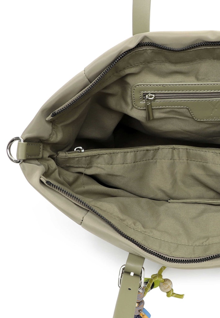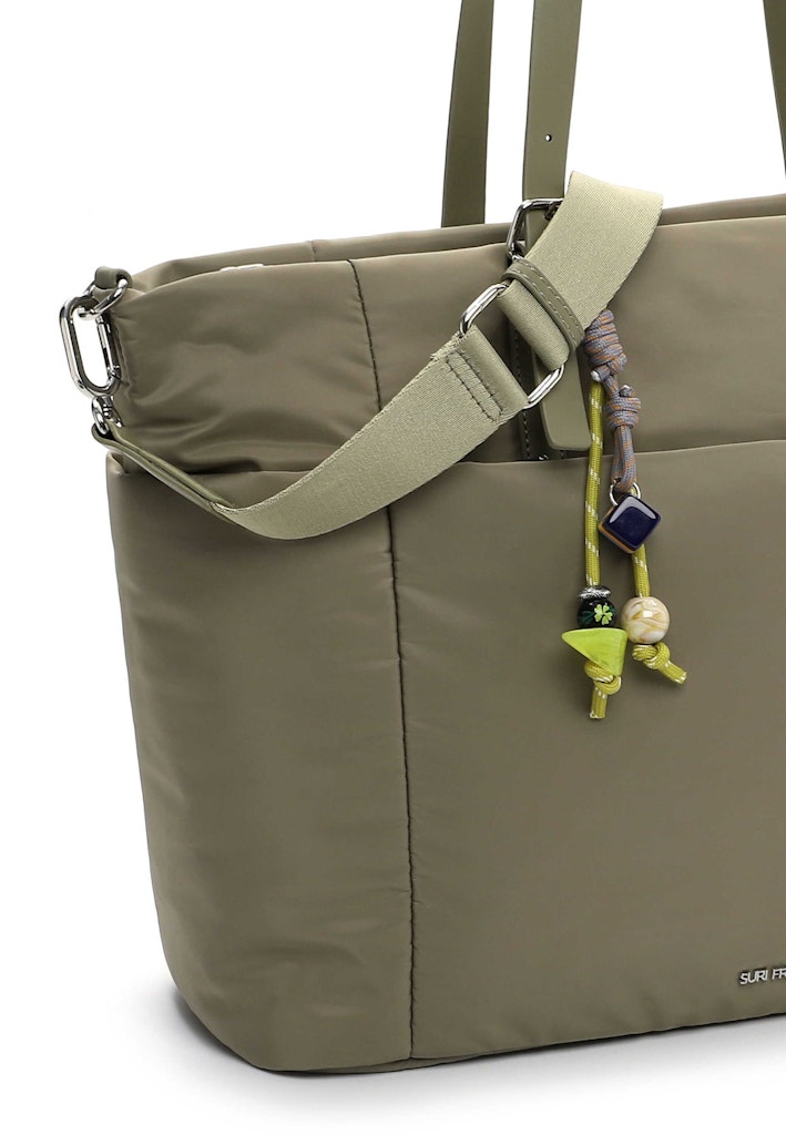 Persönlichkeit zeigen - mit SURI FREY Natürlich, selbstbewusst und brillant - so zeigen sich Frauen im Alltag. Selbstverständlich am liebsten mit ihrer Lieblingstasche. Der Shopper SFY Sissy kommt aus Feinsynthetik mit Reißverschluss und sieht einfach gut aus. Er ist ein lässiges Statement für den Alltag. Ein Shopper auf den man zählen kann. Gefertigt ist das Modell, das sich mit einem Reißverschluss verschließen lässt, aus Feinsynthetik. Durch das Material ist es angenehm im Griff. Die Nylon-Optik und das Uni-Design sind fein gearbeitet und verleihen dem Shopper einen edlen Look. Wer viel unterwegs ist, will einfach immer gut aussehen. SURI FREY hat genau die Accessoires, die Frauen lieben und die jedes Outfit mit Stil vervollständigen. Der Shopper hat ein übersichtliches Hauptfach und eine Reißverschluss-Mittelwand, die praktisch für die sichere Aufbewahrung der wichtigsten Dinge ist. Ein Rückfach mit Reißverschluss schafft zusätzlichen Stauraum und ermöglicht den schnellen Zugang zu Dingen, die man immer parat haben möchte. Das Modell SFY Sissy ist von der Haptik eher weich und daher besonders angenehm zu tragen. Einen zusätzlichen Akzent setzt Single Lettering. Dieser neue Lieb