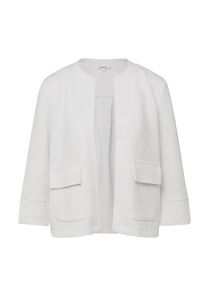 Diese verkürzte Scuba-Jacke im lässigen Relaxed Fit wird dank ihres weichen, glatten Materials zum perfekten Begleiter für entspannte Tage. Der praktische Stehkragen und die aufgesetzten Taschen machen sie alltagstauglich, während die 3/4-Ärmel mit Schlitzen für moderne Leichtigkeit sorgen. Ideal für zwanglose Momente, in denen du dich einfach wohlfühlen möchtest!