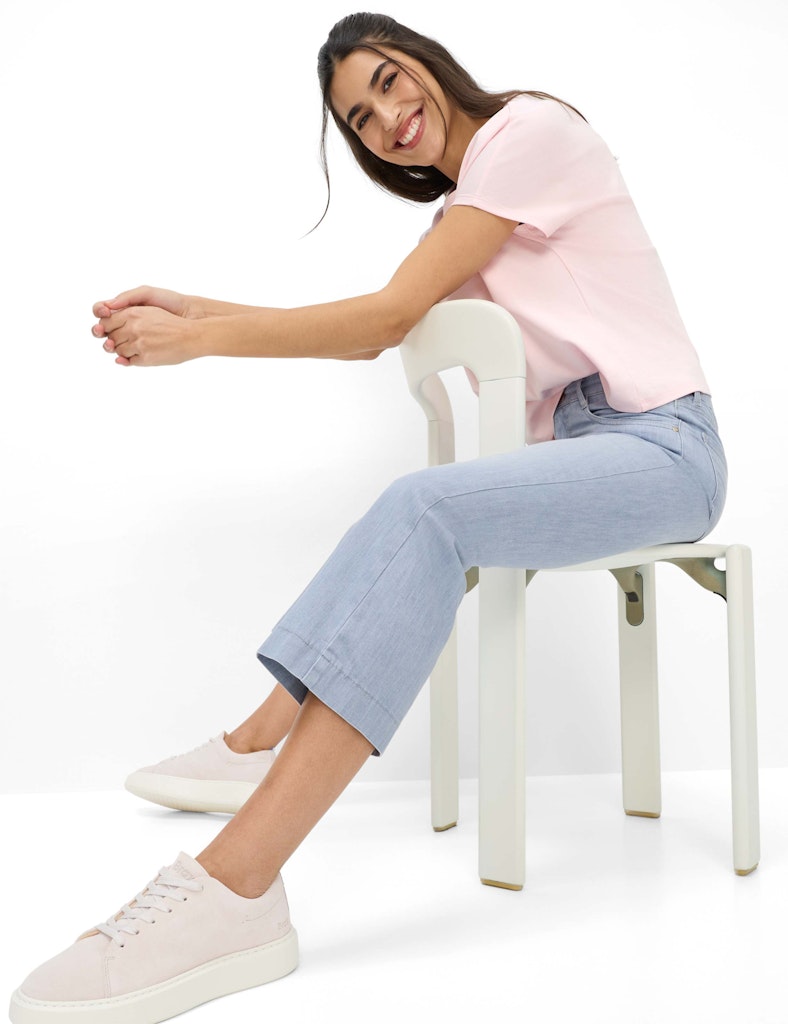 Starten Sie trendsicher und sommerlich leicht in die warme Jahreszeit mit der Five-Pocket-Jeans im Style Mary S. Im Regular Bootcut präsentiert sich die Damenjeans mit dezent ausgestellter Silhouette bei normaler Leibhöhe und überrascht mit einer verkürzten Schrittlänge. Der Look wird durch klassische Einschubtaschen sowie aufgesetzte Gesäßtaschen ergänzt. Optisch besticht die gepflegte Damenhose durch einen smarten Bügelbruch und dezente Used-Effekte, die den authentischen Jeans-Charakter unterstreichen. Im Fokus steht aber der besonders leichte Ultralight Denim aus einem soften Baumwoll-Stretch, der ein luftiges Tragegefühl garantiert. Dieser Komfort wird durch die integrierte Coolmax-Technologie nochmals verstärkt. Die Five-Pocket-Jeans bietet zusätzlich eine exzellente Feuchtigkeitsregulierung und wirkt angenehm kühlend auf der Haut. Eine perfekte Verbindung von Design und Funktion.