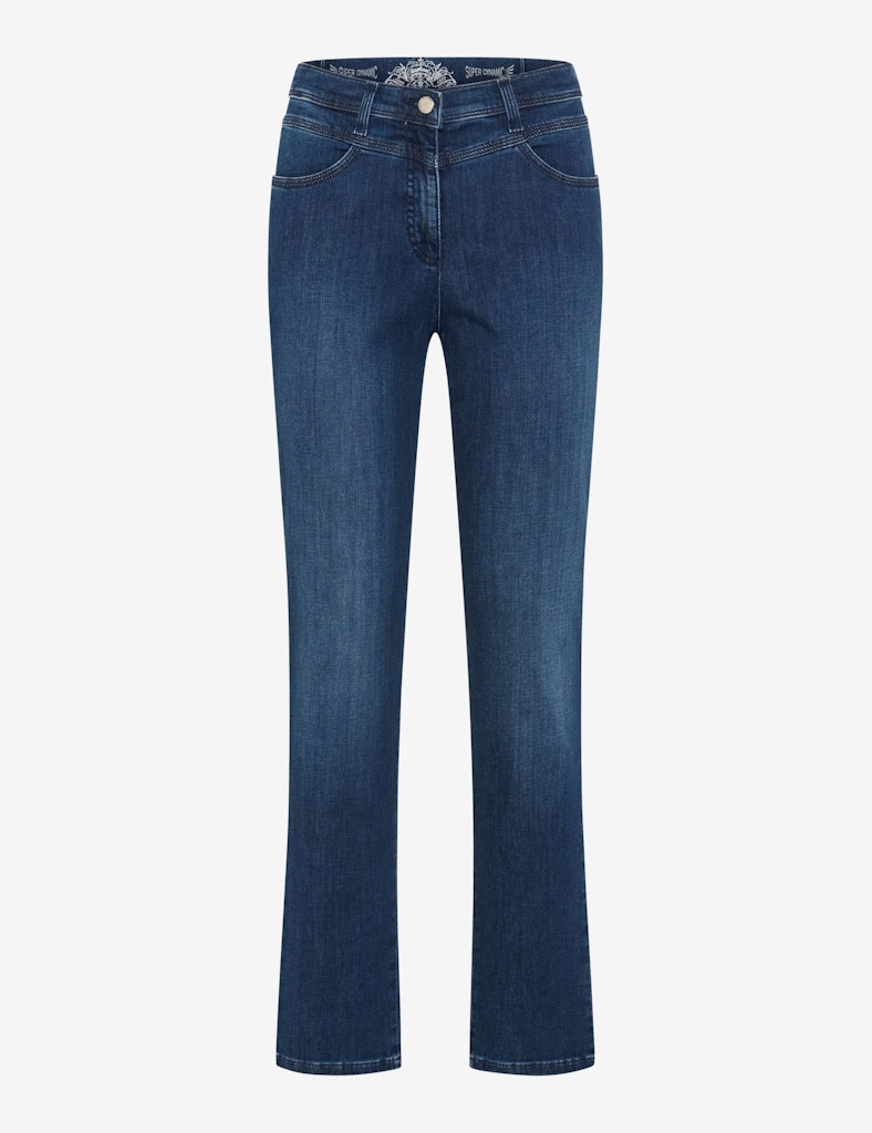 Komfortwunder und Styling-Partner: Die Five-Pocket-Jeans im Style Laura New präsentiert sich als vielseitiges Essential mit modernem Anspruch. Diese Damenhose inszeniert die weibliche Linie vorteilhaft durch einen Super Slim Fit mit schlanker Silhouette und umschließt die Taille angenehm dank der hohen Leibhöhe. Praktische Details wie aufgesetzte Gesäßtaschen mit Stitching ergänzen das Design, wobei der innovative Magic Waist Dehnbund ganz ohne sichtbaren Verschluss ein einfaches Hineinschlüpfen und sofortiges Wohlfühlen ermöglicht. Optisch überzeugt die Damenjeans durch eine authentische und zugleich gepflegte Optik. Einen echten Mehrwert bietet die verarbeitete Super Dynamic Qualität, die für ihre extreme Dehnbarkeit und hervorragenden Rücksprungwerte bekannt ist. Der hochwertige Denim besteht aus einem angenehmen Baumwollmix, der die hautsympathischen Eigenschaften der Naturfaser mit dem weichen Griff von Lyocell und der funktionalen Flexibilität synthetischer Fasern vereint. Dieses Zusammenspiel garantiert nicht nur eine perfekte Passform, sondern auch eine langlebige Formstabilität.