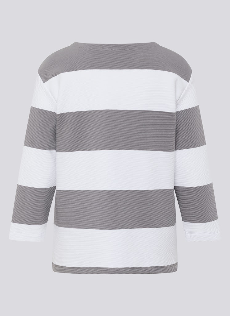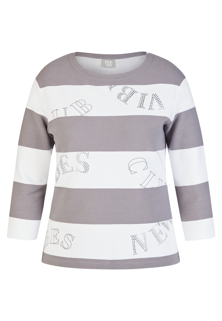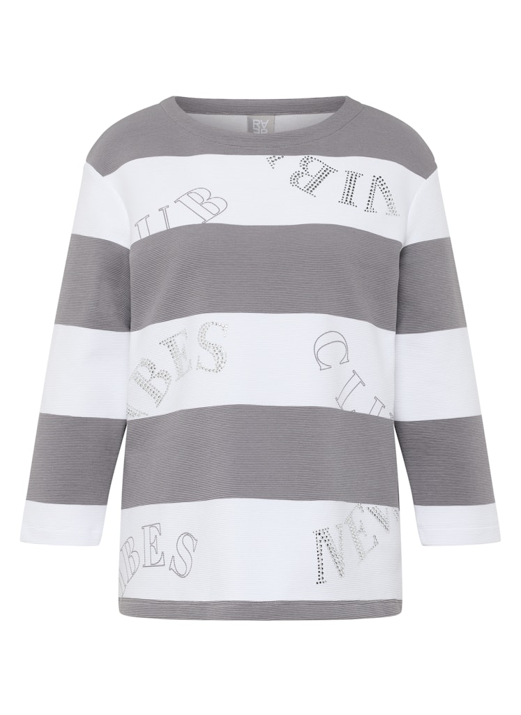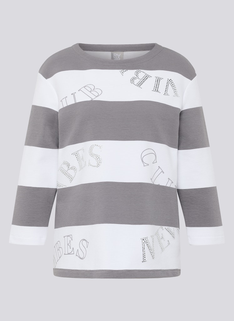 Dieses Shirt präsentiert sich im klassischen Ringeldesign mit dekorativen Schrift-Elementen und feinen Strassdetails. Der Rundhalsausschnitt und die 3/4-Ärmel unterstreichen die sportive Optik. Der Baumwollmix mit Polyester und Elasthan sorgt für angenehme Weichheit, Formstabilität und elastischen Tragekomfort _ ideal für vielseitige Casual-Kombinationen. Baumwollmix mit Stretchanteil. Mit Strassdetails verziert. 3/4-Ärmel. Klassisches Ringeldesign. Angenehm elastisch.