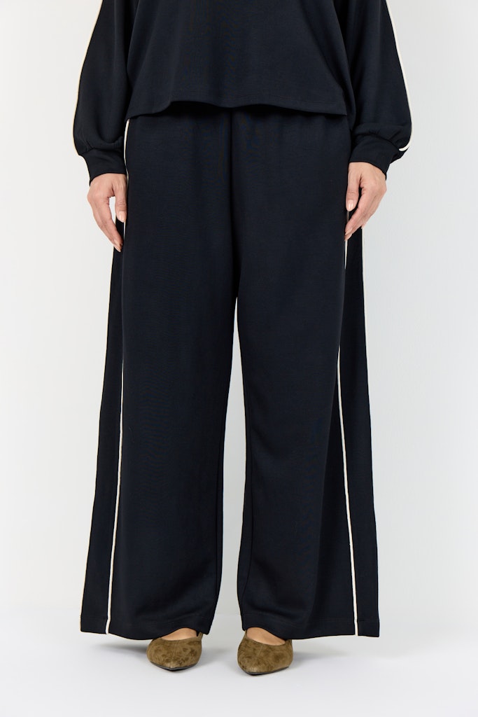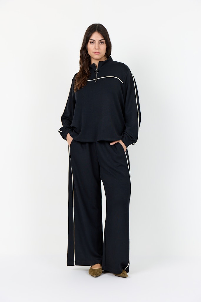 WA-SABINA 89 ist eine schöne Hose aus 48% Modal, 48% Polyester, 4% Elastan. Die Hose hat eine lockere Passform und seitliche Streifen, die sich bis zur vollen Länge erstrecken. Sie lässt sich elegant mit einer schlichten Bluse oder einem taillierten Sakko kombinieren und sorgt für einen raffinierten Look.