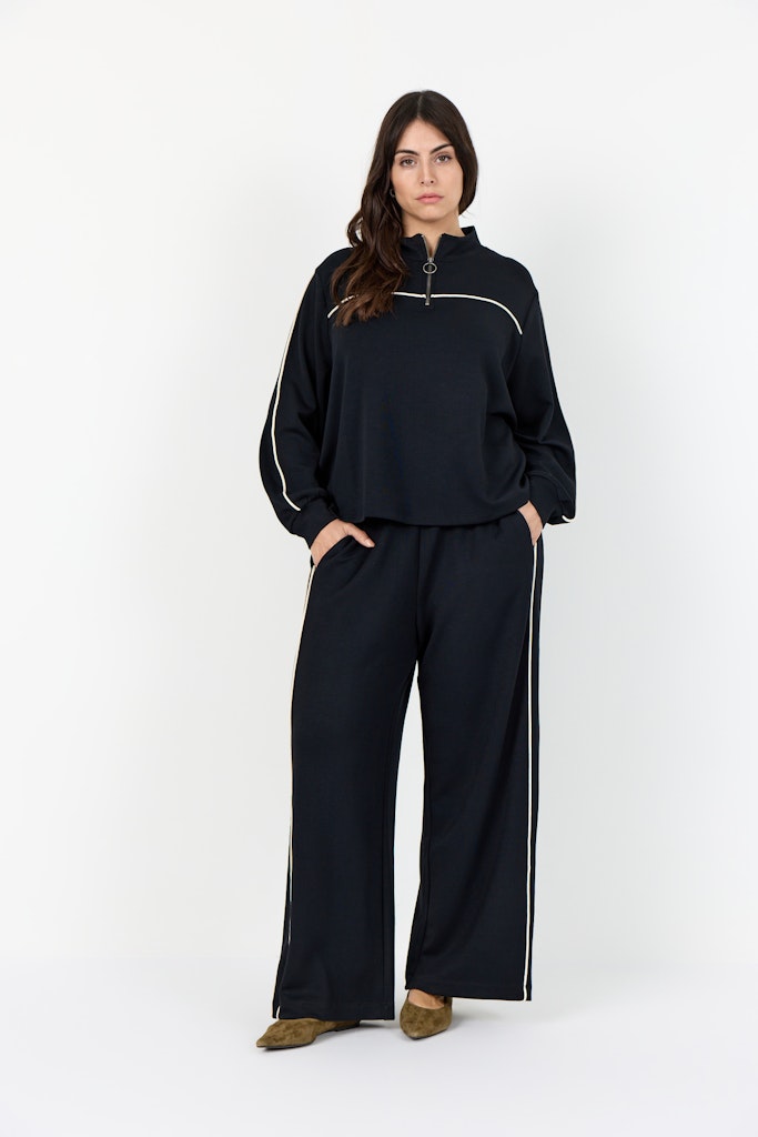 WA-SABINA 88 ist ein cooles Sweatshirt aus 48% Modal, 48% Polyester und 4% Elasthan. Es hat einen hohen Kragen mit halbem Reißverschluss und stylische Paspel-Details an den Ärmeln und auf der Brust. Kombinieren Sie es mit Jeans oder Jogginghosen für einen entspannten und coolen Look.
