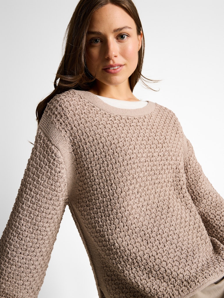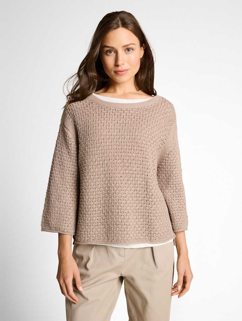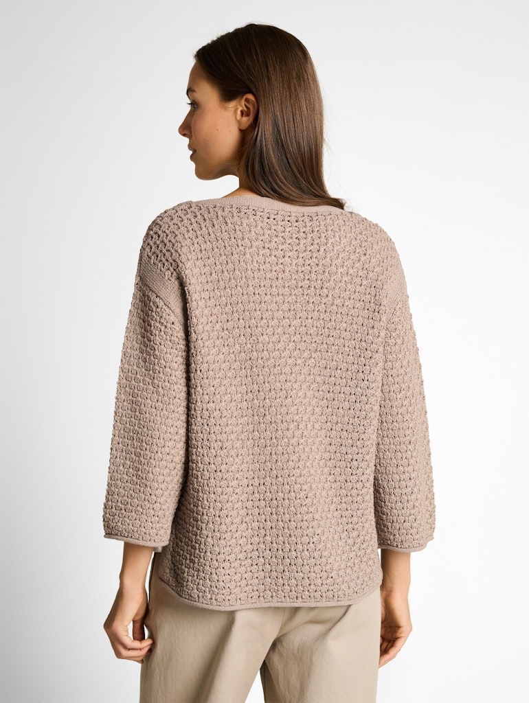 Locker geschnittener Pullover mit Lochmuster, 3/4-Arm und Seitenschlitzen