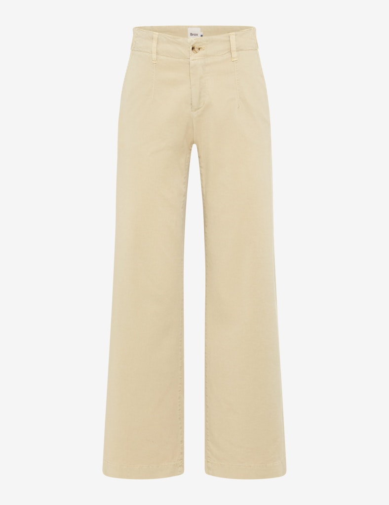 Freuen Sie sich auf die warmen Tage mit dieser trendigen Flatfronthose im Style Maine S. Diese Culotte verkörpert pure Leichtigkeit und modernen Chic in angesagten Colorits. Die angesagte Wide Leg mit ihrer ausgestellten Silhouette sorgt für eine entspannte und zugleich modische Optik. Unterstützt wird dieser lässige Look durch die verkürzte Schrittlänge und eine bequeme, normale Leibhöhe. Französische Vorder- und Leistengesäßtaschen fügen sich harmonisch in das cleane Design ein, wobei feine Ripsbänder und Paspeln als dezente Verzierungen stilvolle Akzente setzen. Dieser modische Anspruch wird durch einen hochwertigen Lyocell-Baumwoll-Mix ergänzt, der sich durch seine besonders weiche Haptik und einen fließenden Fall auszeichnet. Dank des Stretchanteils bietet die Hose zudem maximale Bewegungsfreiheit. So vereint die Culotte sommerliche Unbeschwertheit mit einem exklusiven Materialerlebnis für einen entspannten und zugleich souveränen Auftritt.