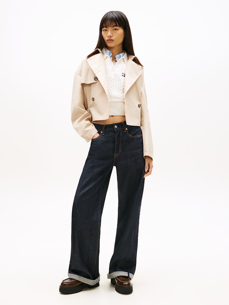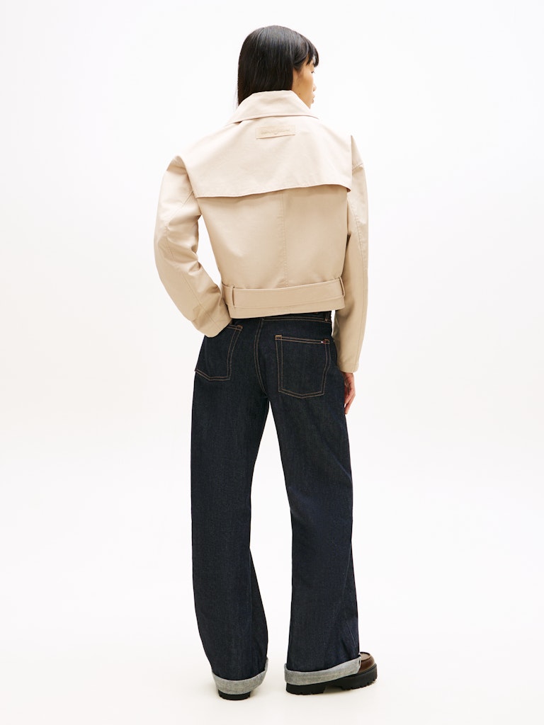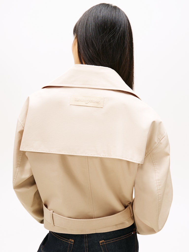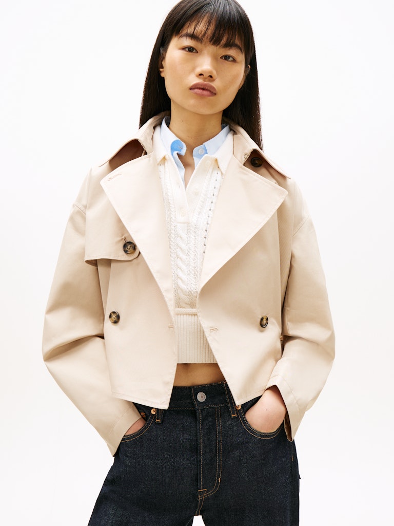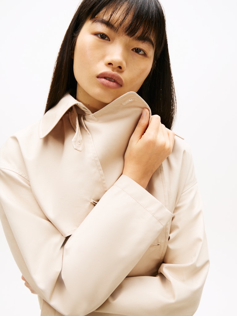 This water-repellent twill trench coat offers a fresh take on the classic style with its short cut and relaxed silhouette.Highlights