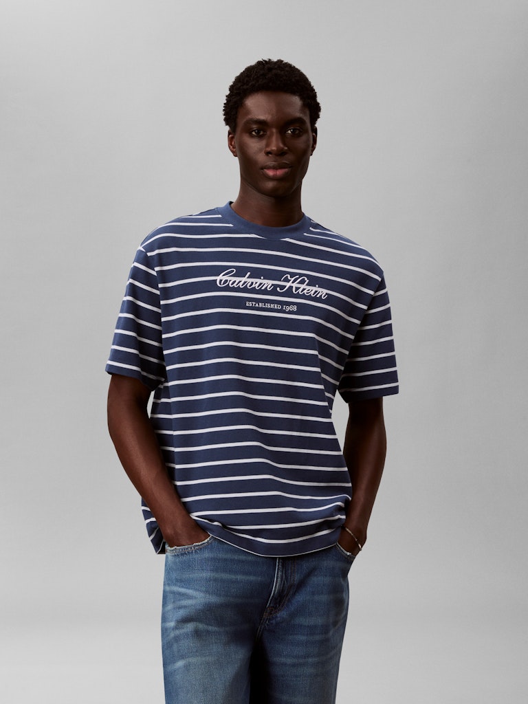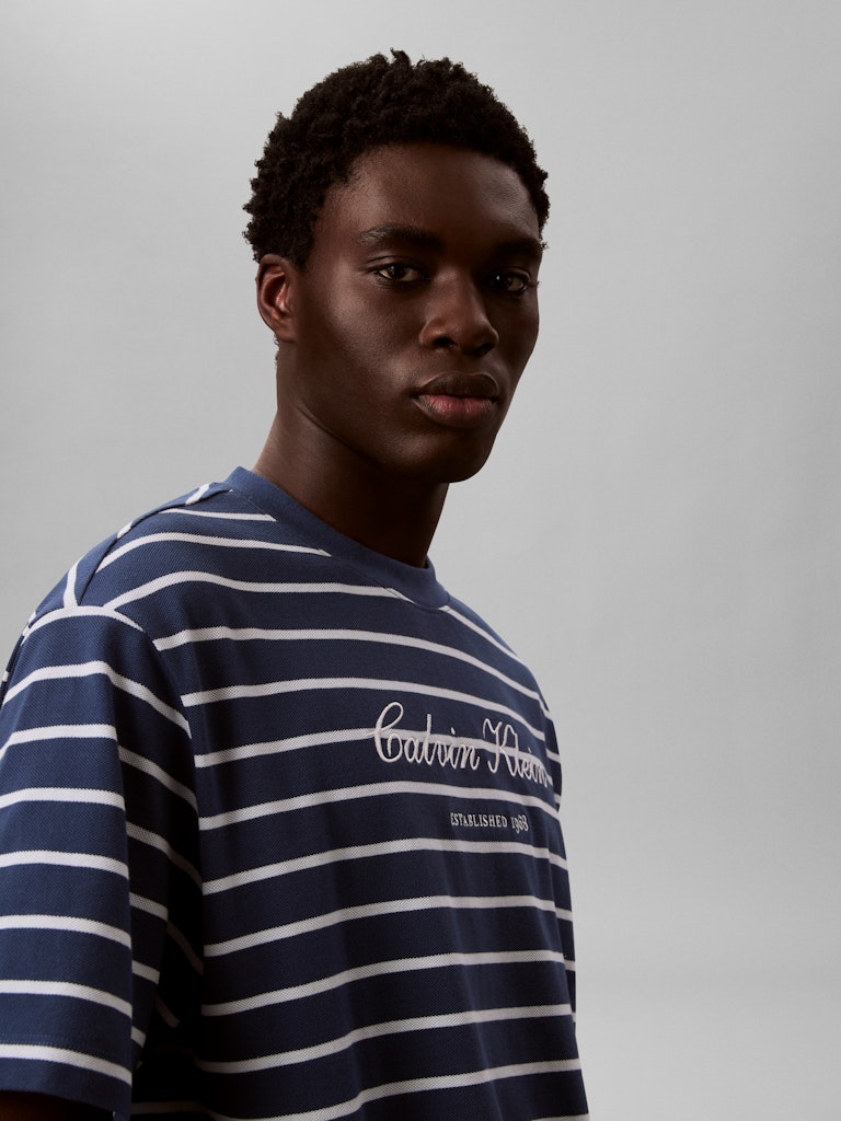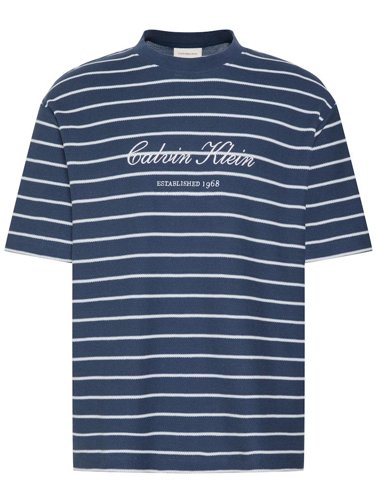 Bring some nautical-inspired charm to your warm-weather looks with this T-shirt, featuring a classic crew neck, horizontal stripes and stylish pique texture.