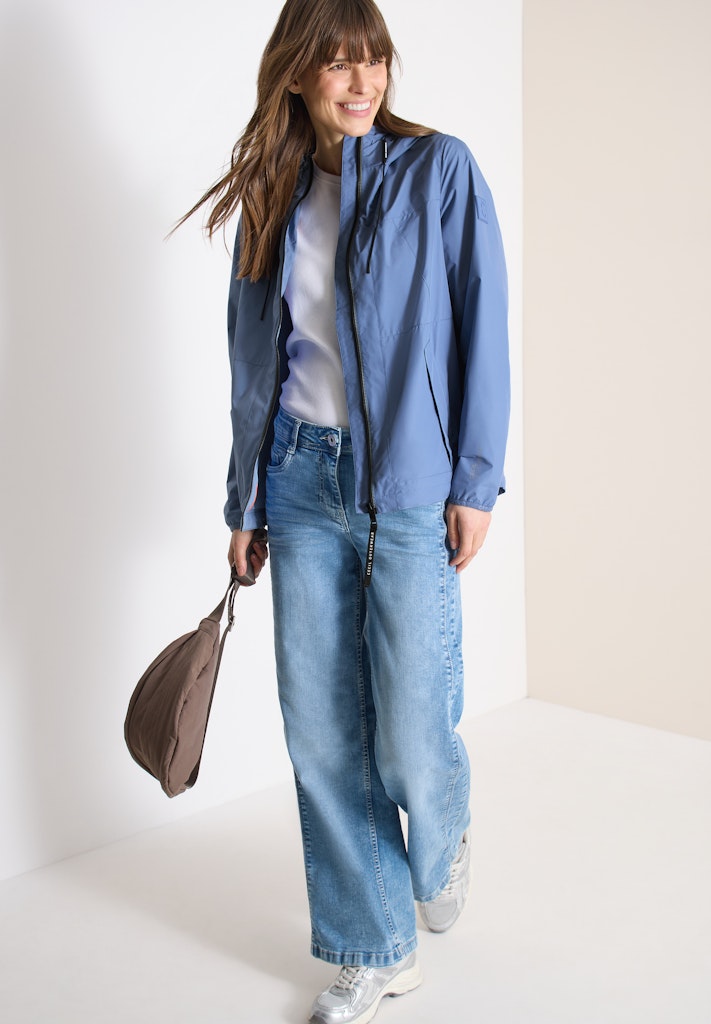 Der sportive Windbreaker von CECIL ist ideal für aktive Tage im Freien und wechselhaftes Wetter. Die Softshellqualität trägt sich angenehm leicht, während Kapuze mit Tunnelzug zusätzlichen Schutz bietet. Seitliche Taschen und Tunnelzüge am Saum sorgen für Funktionalität und eine flexible Passform. Der leicht gerundete Saum rundet den sportiven Look lässig ab. Softshelljacke Outdoor Kapuze Langarm Sportiver Look Material: Obermaterial: 100% Polyester; Futter: 100% Polyester
