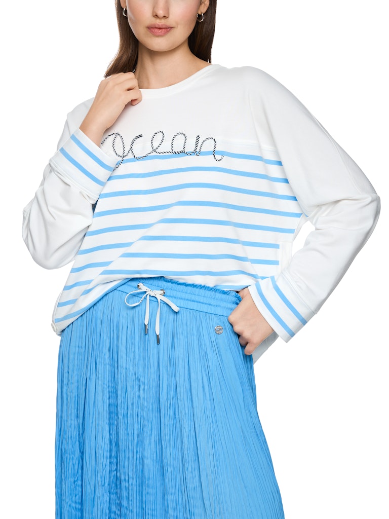 Gestreiftes Sweatshirt|Lässiges Sweatshirt in weiter Form mit überschnittenen Schultern und Rundhals Ausschnitt. Highlight des Shirts ist das Streifenmuster und die "Ocean" Stickerei auf der Vorderseite. Das verleiht dem Shirt einen maritimen Touch. Der weiche Materialmix liegt angenehm auf der Haut. Weiteres Detail: Seitlich befinden sich kleine Schlitze, die mit Knöpfen versehen sind.|Weite Form|Streifenmuster|Mit Stickerei|Seitliche Schlitze|Das Model ist 179 cm groß und trägt N3/38.