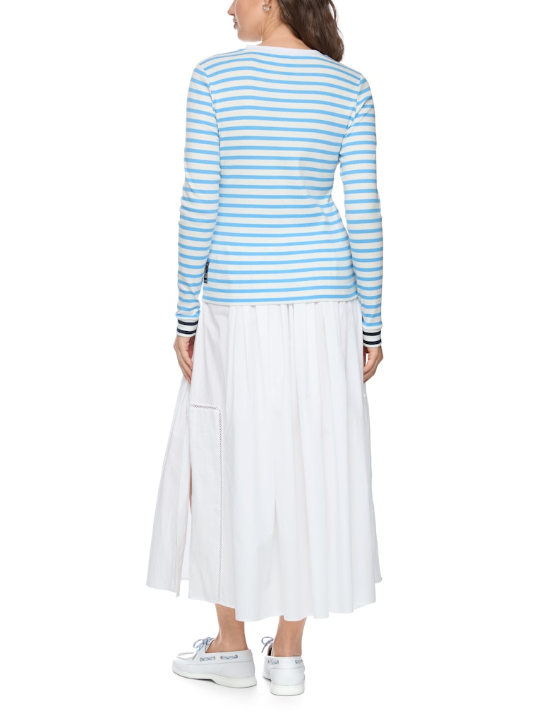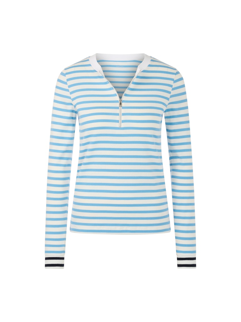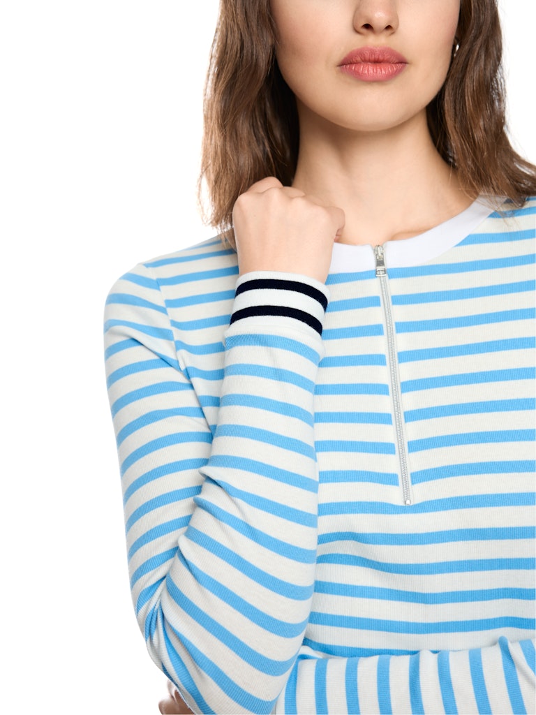 Gestreiftes Langarmshirt|Figurnah geschnittenes Shirt mit langen Ärmeln und Rundhals Ausschnitt. Das Shirt kommt mit gestreiftem Muster und silberfarbenem Reißverschluss an der Vorderseite. Das unterstreicht den maritimen Touch. Der weiche Baumwollmix liegt angenehm auf der Haut und bietet einen hohen Tragekomfort.|Figurnaher Schnitt|Reißverschluss|Langarm|Baumwollmix|Das Model ist 179 cm groß und trägt N3/38.