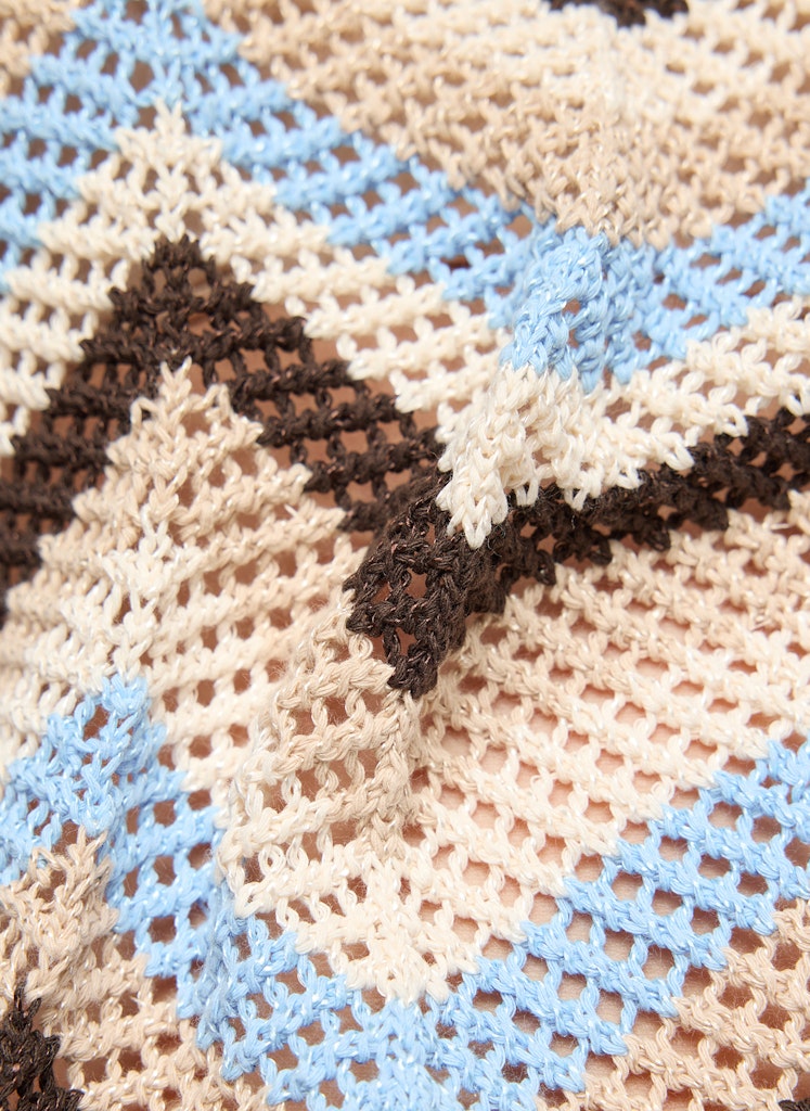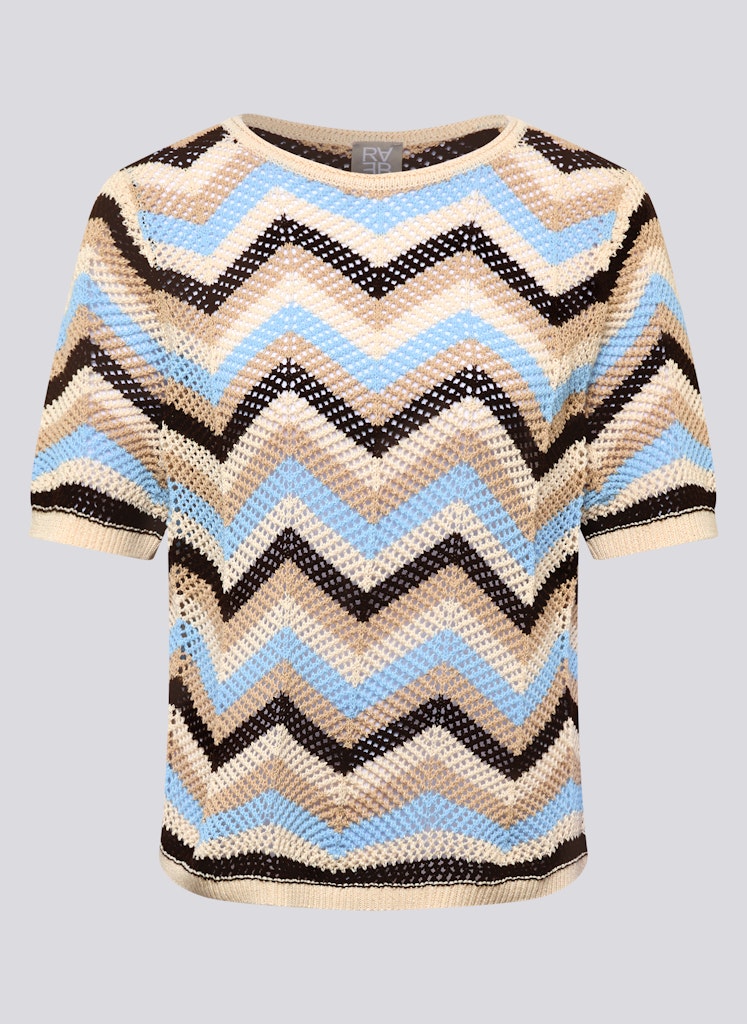 Dieses Strickshirt verbindet sommerliche Leichtigkeit mit einem ausdrucksstarken Muster. Die offene, luftige Strickstruktur sorgt für ein angenehmes Tragegefühl und macht das Modell ideal für warme Tage. Der klassische Rundhalsausschnitt und die kurzen Ärmel unterstreichen den entspannten Look, während die Materialmischung aus Polyester und Baumwolle Formstabilität, Pflegeleichtigkeit und Komfort vereint. Ein vielseitiger Begleiter für moderne Casual-Outfits. Luftige Strickstruktur. Rundhalsausschnitt. Kurze Ärmel. Formstabile Qualität. Pflegeleicht und bequem.