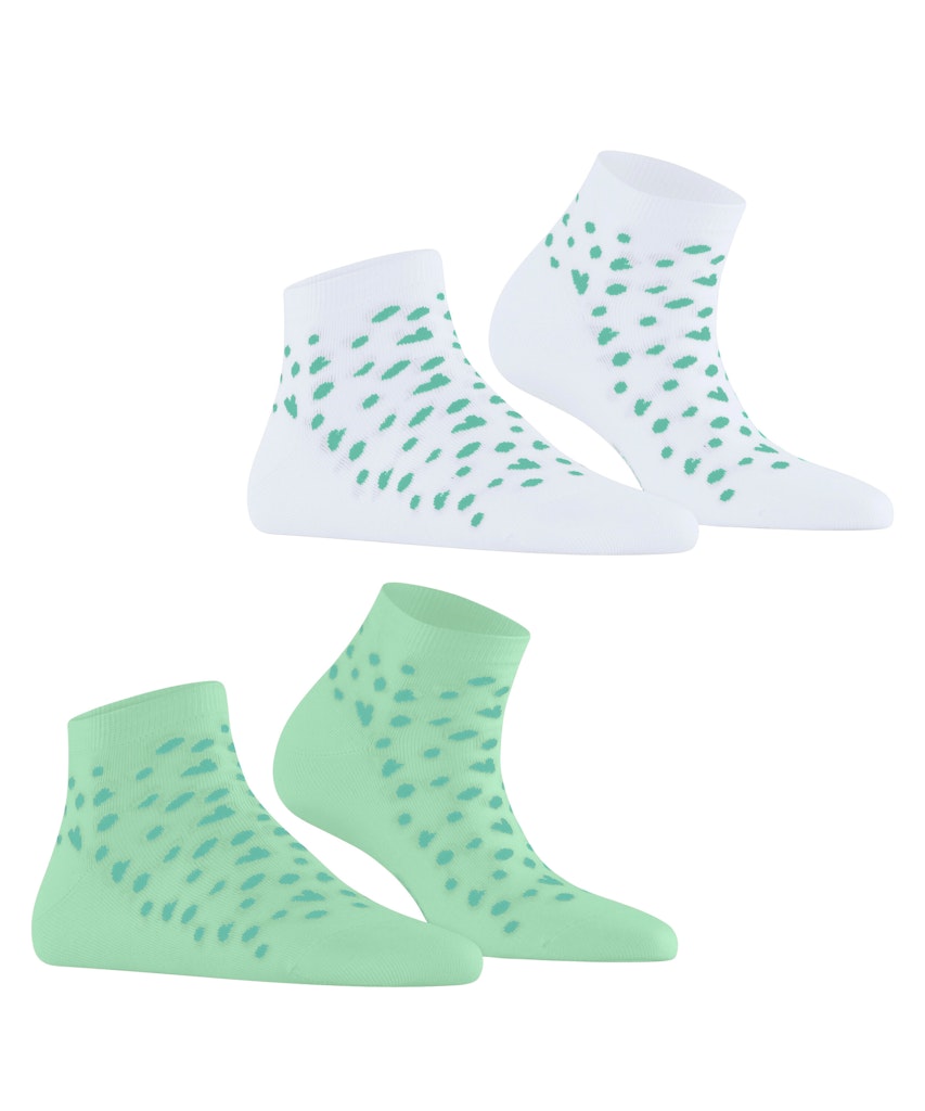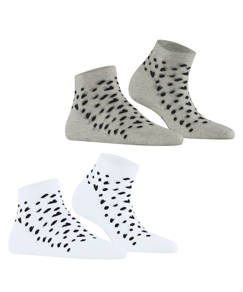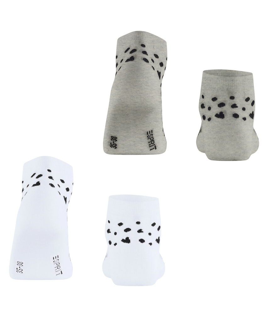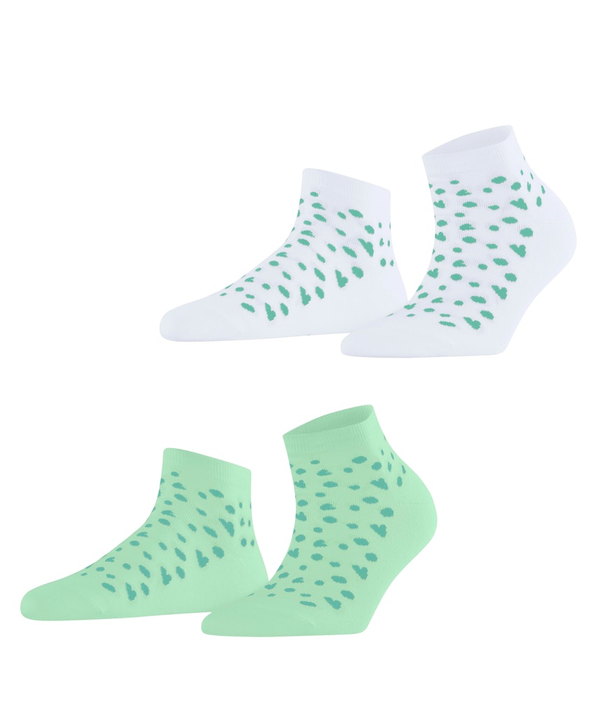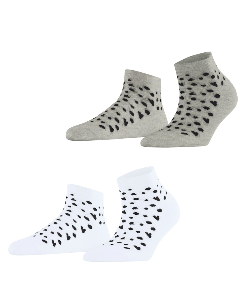 Die Sneakersocken im Doppelpack aus Bio-Baumwolle überzeugen mit einem liebevollen Muster aus kleinen Herzen und Punkten, das jedem Outfit eine verspielte Note verleiht. Das weiche, nachhaltige Material sorgt für ein angenehmes Tragegefühl, während die detailreiche Gestaltung die Socken zu einem echten Blickfang macht. Perfekt für alle, die Komfort und Stil auf charmante Weise vereinen möchten.