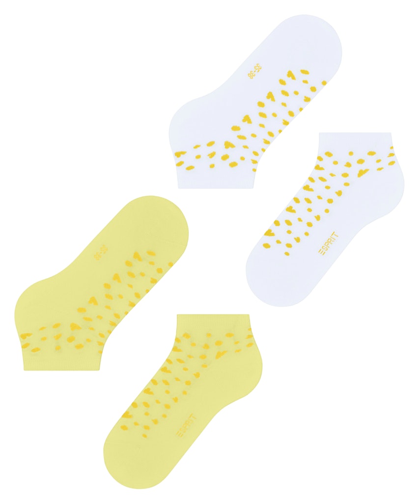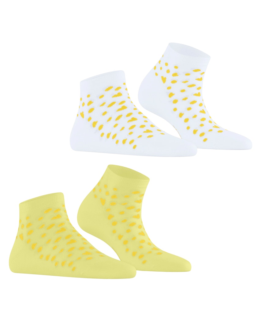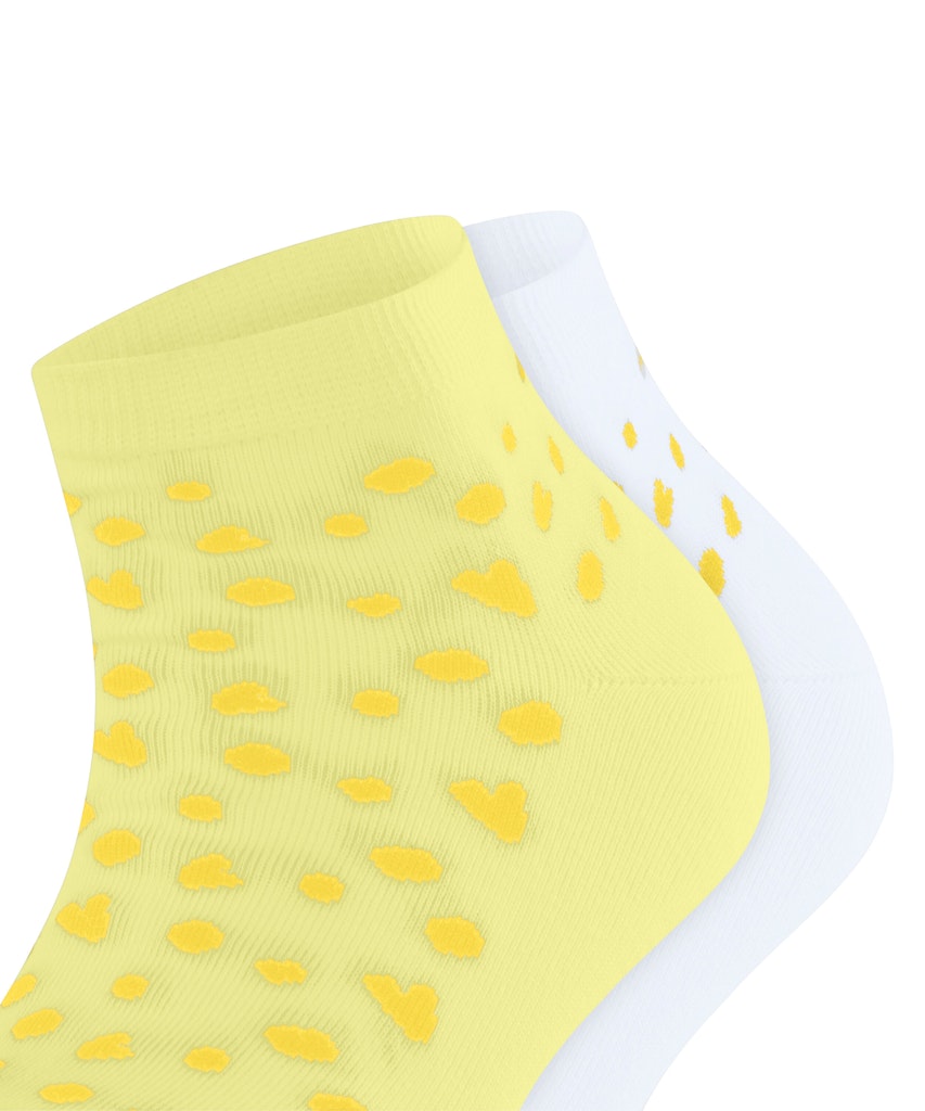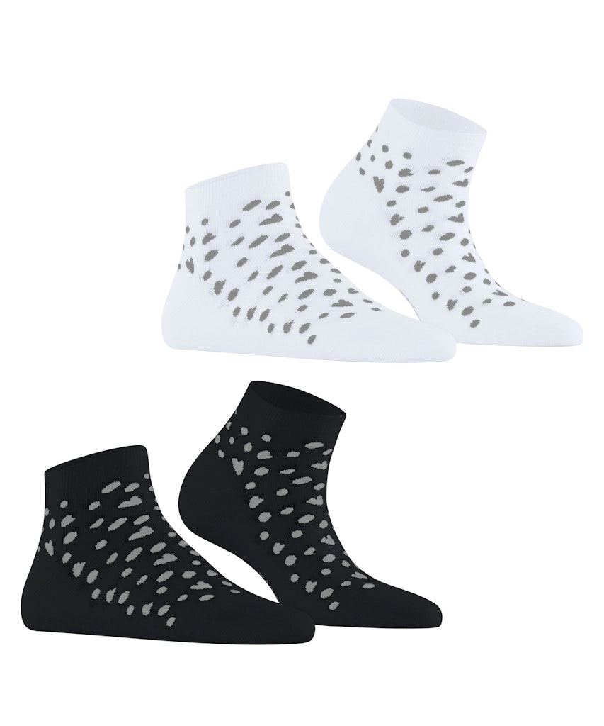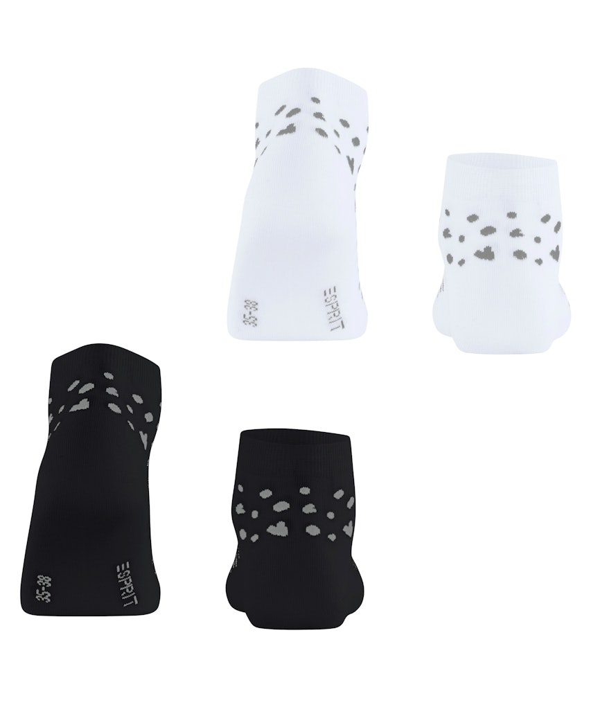 Die Sneakersocken im Doppelpack aus Bio-Baumwolle überzeugen mit einem liebevollen Muster aus kleinen Herzen und Punkten, das jedem Outfit eine verspielte Note verleiht. Das weiche, nachhaltige Material sorgt für ein angenehmes Tragegefühl, während die detailreiche Gestaltung die Socken zu einem echten Blickfang macht. Perfekt für alle, die Komfort und Stil auf charmante Weise vereinen möchten.