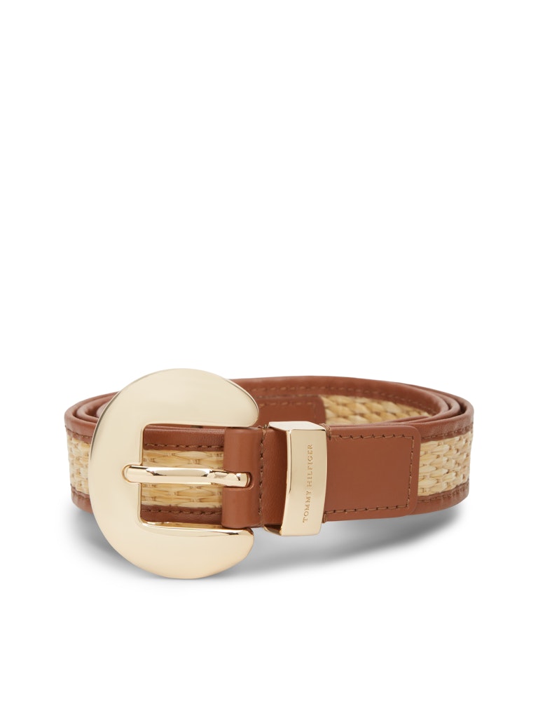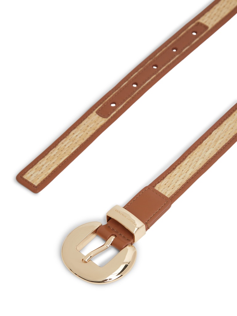 Raffia Oval Buckle Leather Belt