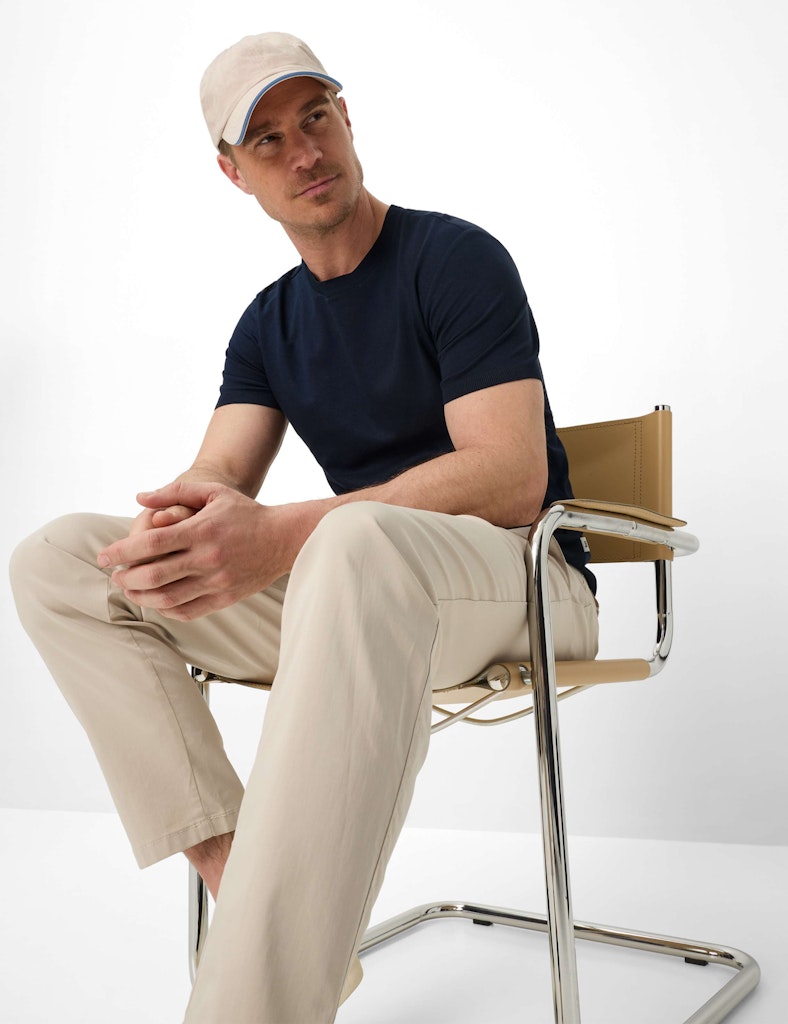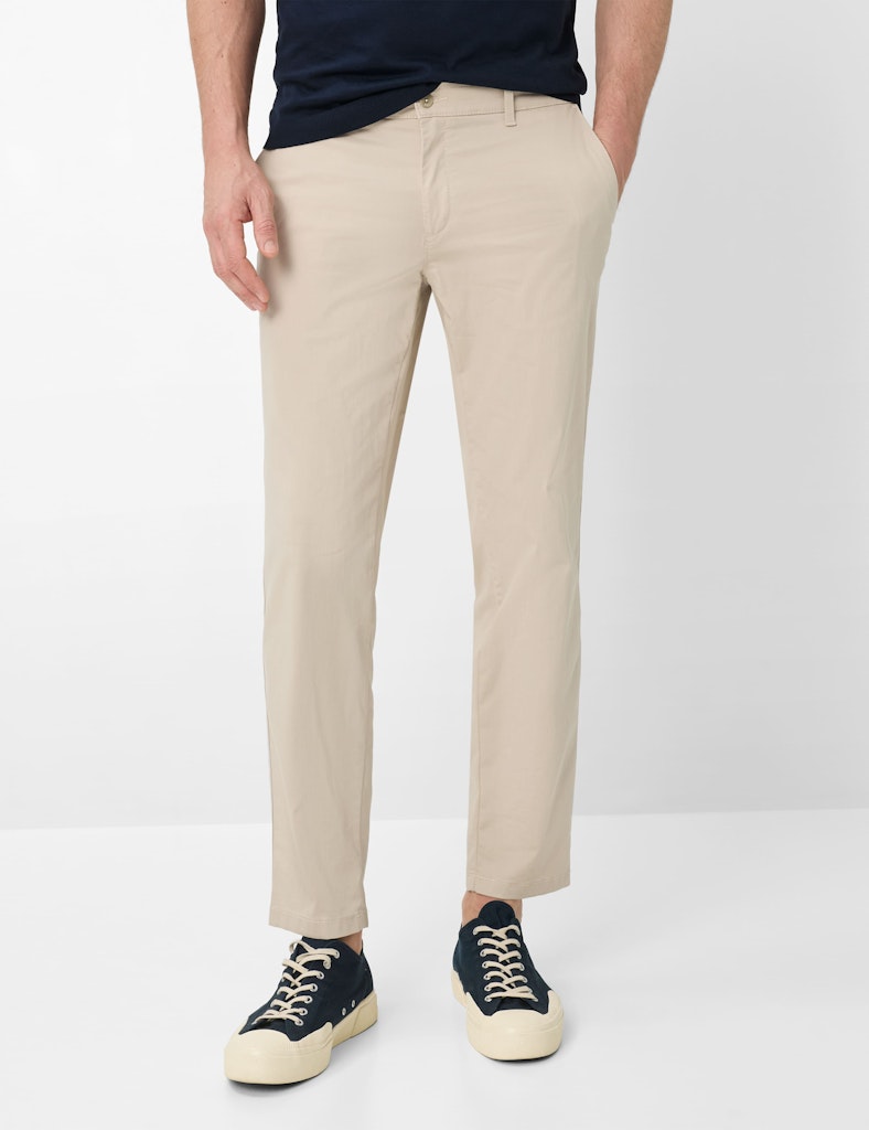 Die Chino Jogpants im STYLE PHIL verbindet lässigen Komfort mit einem gepflegten Look und ist die ideale Wahl für entspannte und dennoch stilvolle Outfits. Sie zeichnet sich durch einen modernen verkürzten Tapered Fit aus, der eine gerade Grundform bietet und zum Bein hin schmaler zuläuft. Der elastische Komfortbund mit praktischem Knopfverschluss garantiert einen optimalen Sitz ohne einzuengen. Klassische Designdetails wie die französischen Taschen auf der Vorderseite und dezente Leistentaschen hinten ergänzen den sportiven Look. Dieses angenehme Tragegefühl wird durch den hochwertigen Baumwollmix unterstützt, der natürliche Weichheit mit Strapazierfähigkeit und dank Elasthan mit ausreichender Bewegungsfreiheit kombiniert. Veredelt wird das Gewebe durch die Satin-Bindung, die der Oberfläche einen feinen, edlen Glanz und einen besonders geschmeidigen Griff verleiht.