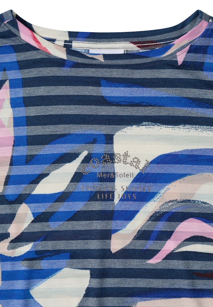 Das leichte Jerseyshirt von CECIL für Damen überzeugt mit einem Multicolor Muster und Streifen in Ausbrenner-Optik. Der U-Boot-Ausschnitt und die kurzen Ärmel sorgen für einen entspannten Casual-Look. Dank elastischem Saum sitzt das Shirt bequem und fällt weich. Ideal für dich, wenn du ein luftiges Shirt für sommerliche Outfits suchst. Leichtes Jerseyshirt Casual U-Boot-Ausschnitt Kurzarm Multicolor Muster mit Streifen in Ausbrenner-Optik Material: 65% Polyester, 35% Viskose