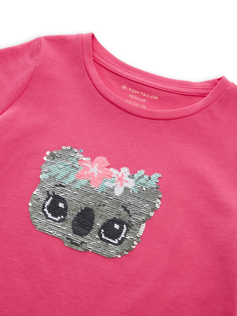 Regular Fit T-Shirt mit Erdbeer-Motiv aus Wendepailletten auf der Vorderseite. Aus einem Single-Jersey-Baumwollstoff für ein angenehmes Tragegefühl.
