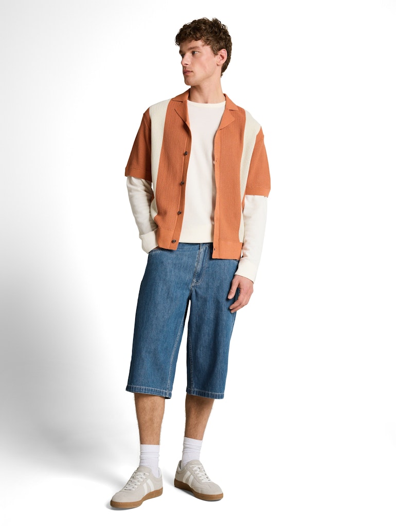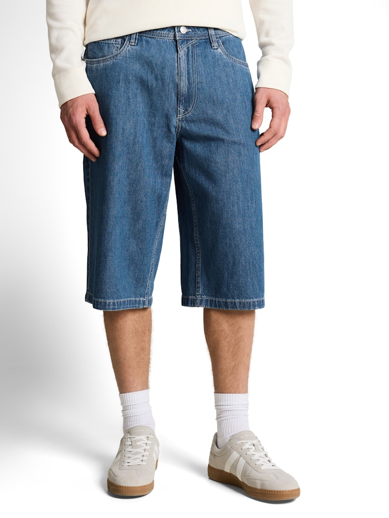 Locker geschnittene Shorts im Five-Pocket-Style mit seitlichen Eingriffstaschen vorne und aufgesetzten Taschen hinten. Aus einem leichten, dünnen Jeansstoff ohne Stretch.