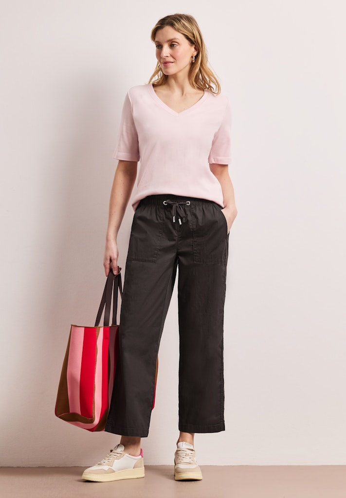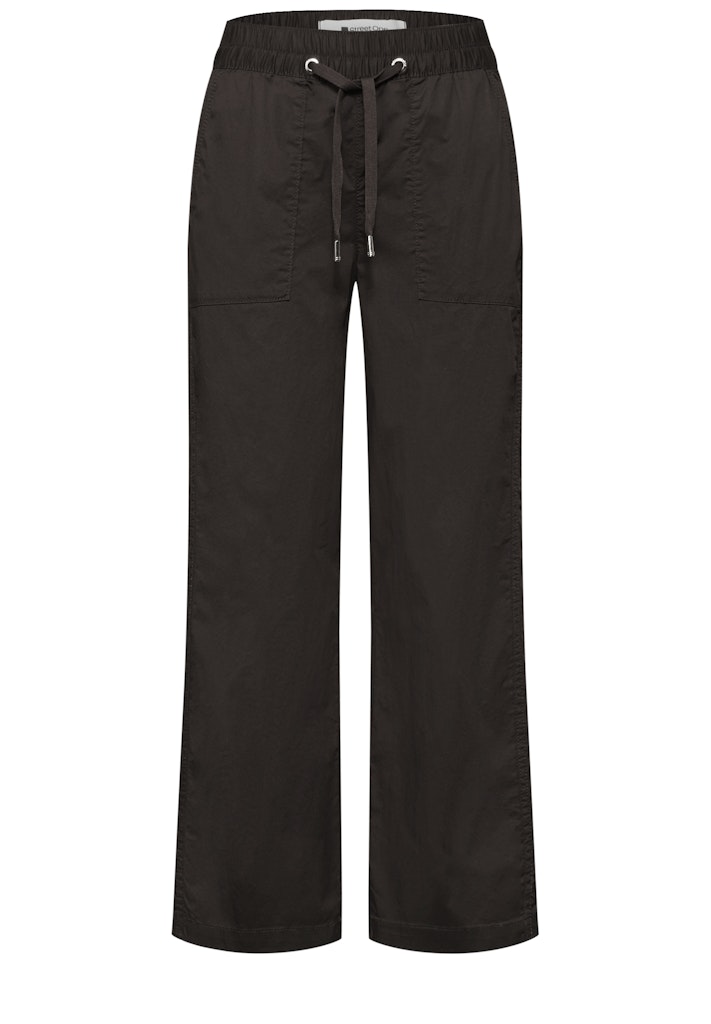 Die Papertouch Hose von Street One für Damen punktet mit ihrer leichten, sommerlichen Baumwollqualität. Loose Fit und Straight Legs sorgen für eine entspannte Passform mit hohem Tragekomfort. Dank elastischem Bund mit Tunnelzug sitzt die Hose angenehm auf Mid Waist-Höhe. Seitliche Taschen machen sie zum idealen Begleiter für warme Tage. Baumwollmix Hose Loose Fit Straight Legs Mid Waist Bequem und sommerlich Material: 98% Baumwolle, 2% Elasthan
