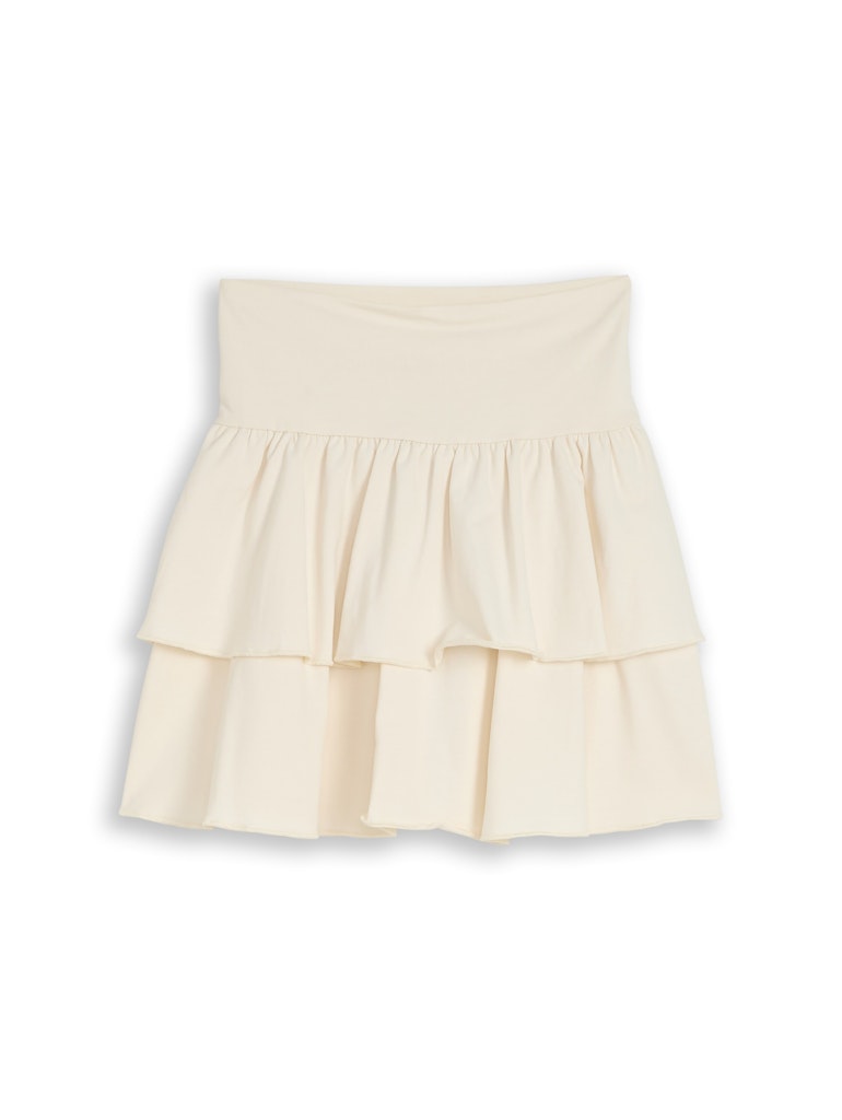 Volantrock mit breitem Gummibund für einen bequemen Sitz. Aus einem Single-Jersey-Baumwollstoff mit Stretch-Anteil für ein angenehmes Tragegefühl.