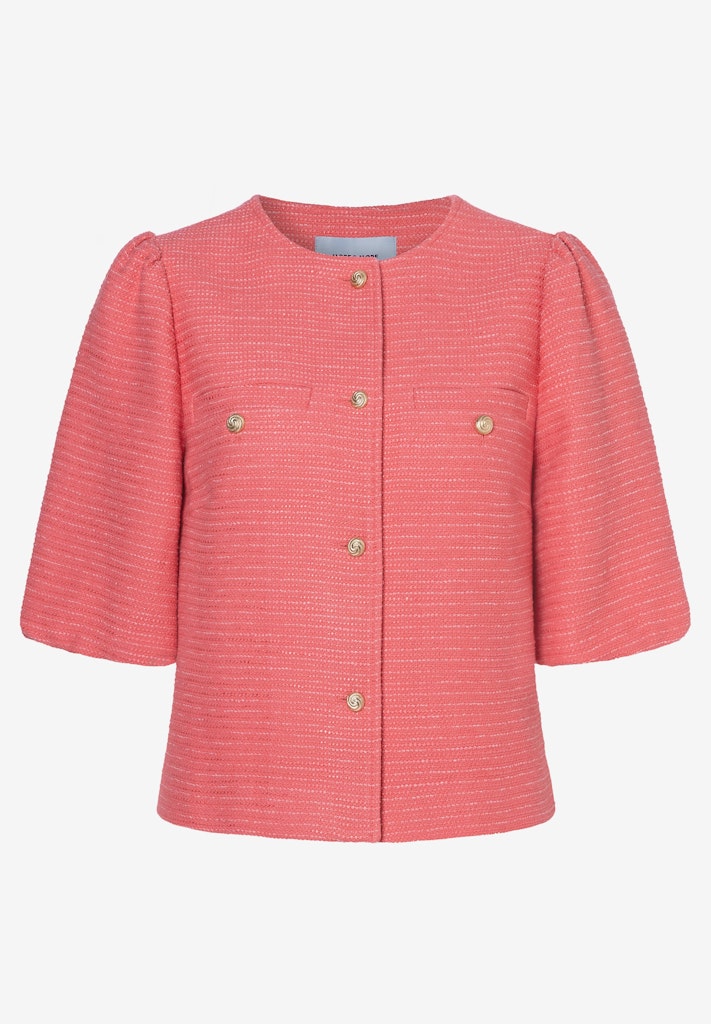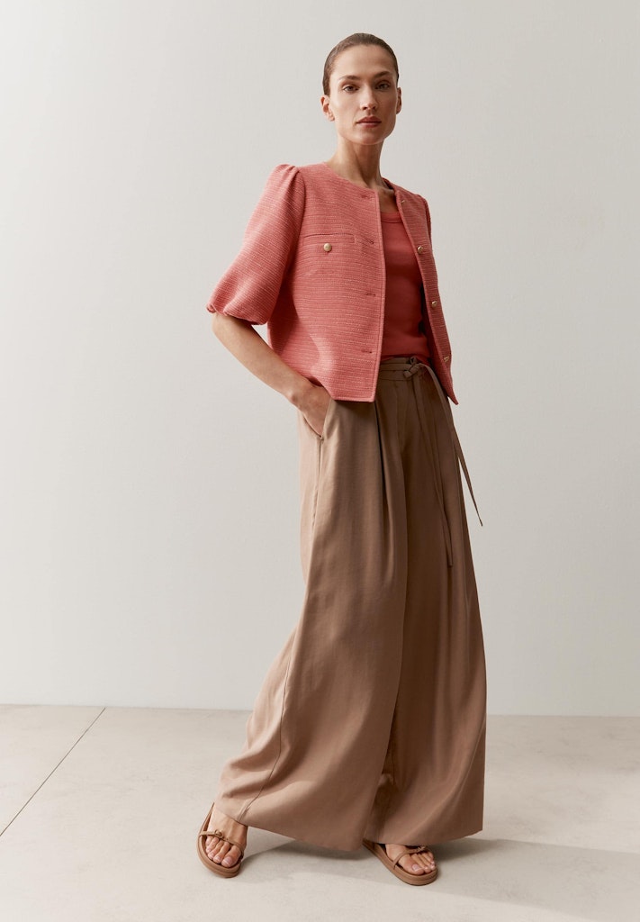 Die feminine Boucléjacke von MORE & MORE begeistert mit modernem Shape und kurzen, voluminösen Ballonärmeln, die der Jacke eine besondere Eleganz verleihen. Die fein-strukturierte Boucléqualität sorgt für eine edle Optik, während die dekorativen Goldknöpfe einen klassischen Akzent setzen. Ob zur weiten Marlenehose, zum fließenden Chiffonkleid oder aber zur lässigen Jeans - diese Kurzjacke ist ein stilvoller Allrounder für besondere Anlässe und elegante Everyday-Outfits.