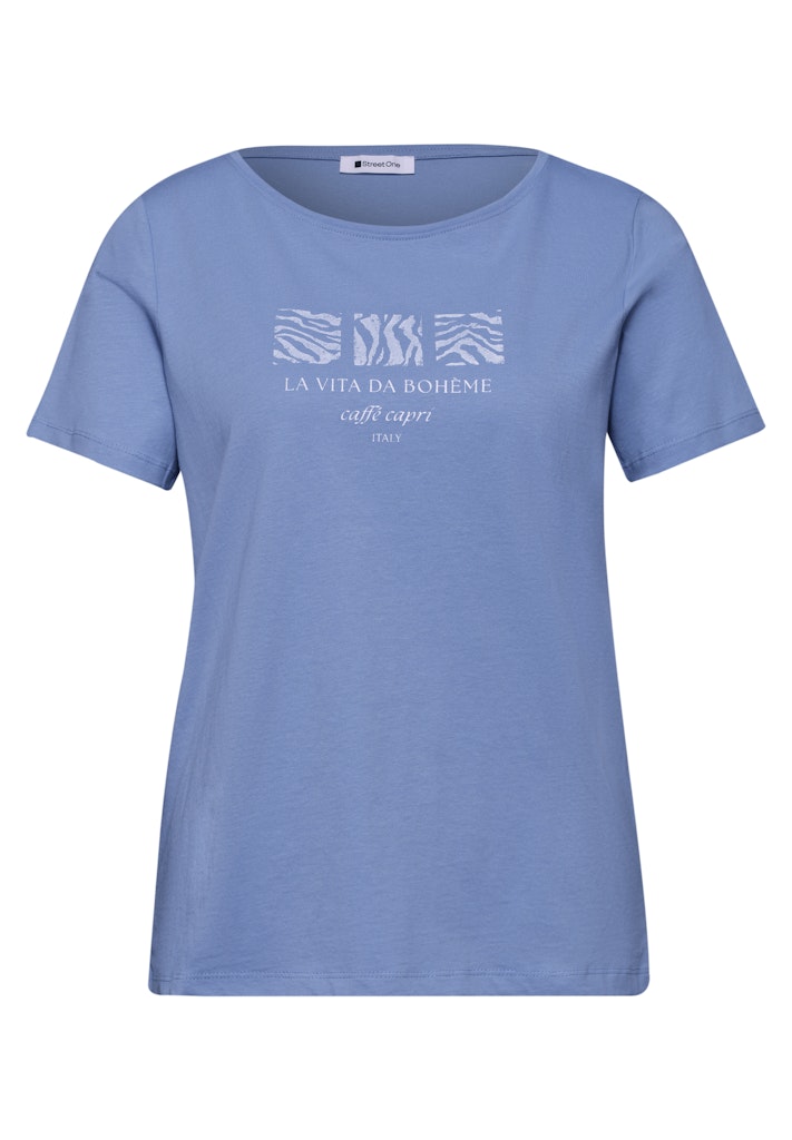 Das Basic T-Shirt mit Print von Street One für Damen ist ein vielseitiger Begleiter für zahlreiche Looks. Die reine Baumwolle fühlt sich angenehm weich auf der Haut an und macht das Jerseyshirt ideal für jeden Tag. Mit klassischem Rundhals und Kurzarm lässt es sich unkompliziert kombinieren. Ein zeitloses Essential für entspannte Outfits mit modischem Akzent. Jerseyshirt Basic Rundhals Kurzarm Vielseitig kombinierbar Material: 100% Baumwolle