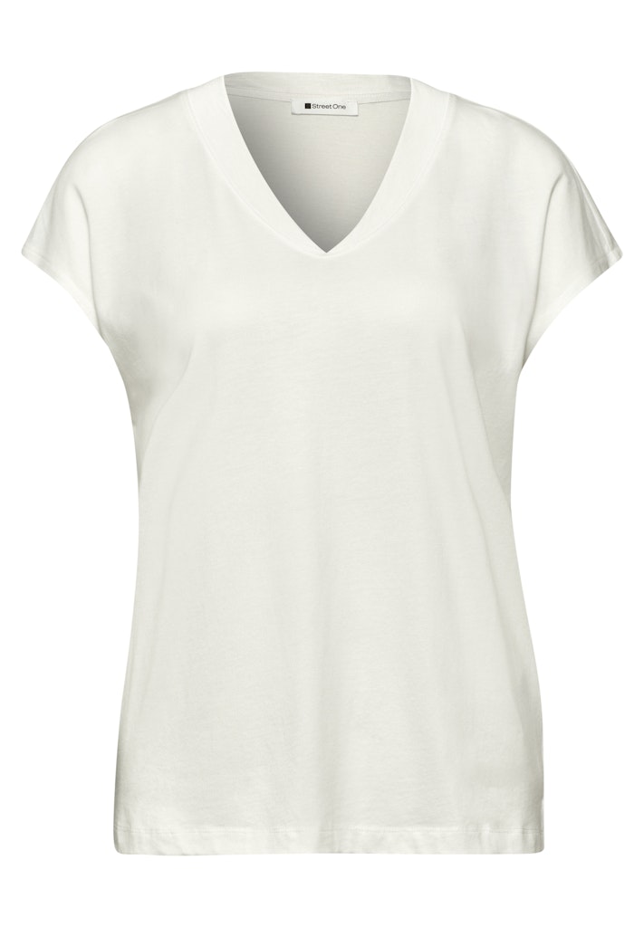 Dieses unifarbene Jerseyshirt von Street One für Damen überzeugt mit einem femininen V-Ausschnitt und lässigen Dropped Shoulders. Der schlichte Look macht es zu einem vielseitigen Kombipartner für Casual-Outfits. Der softe Baumwoll-Modalmix fühlt sich besonders angenehm auf der Haut an. Ideal für dich, wenn du ein bequemes Shirt mit moderner Ausstrahlung suchst. Jerseyshirt Basic V-Ausschnitt Dropped Shoulders Schlicht und vielseitig Material: 50% Modal, 50% Baumwolle