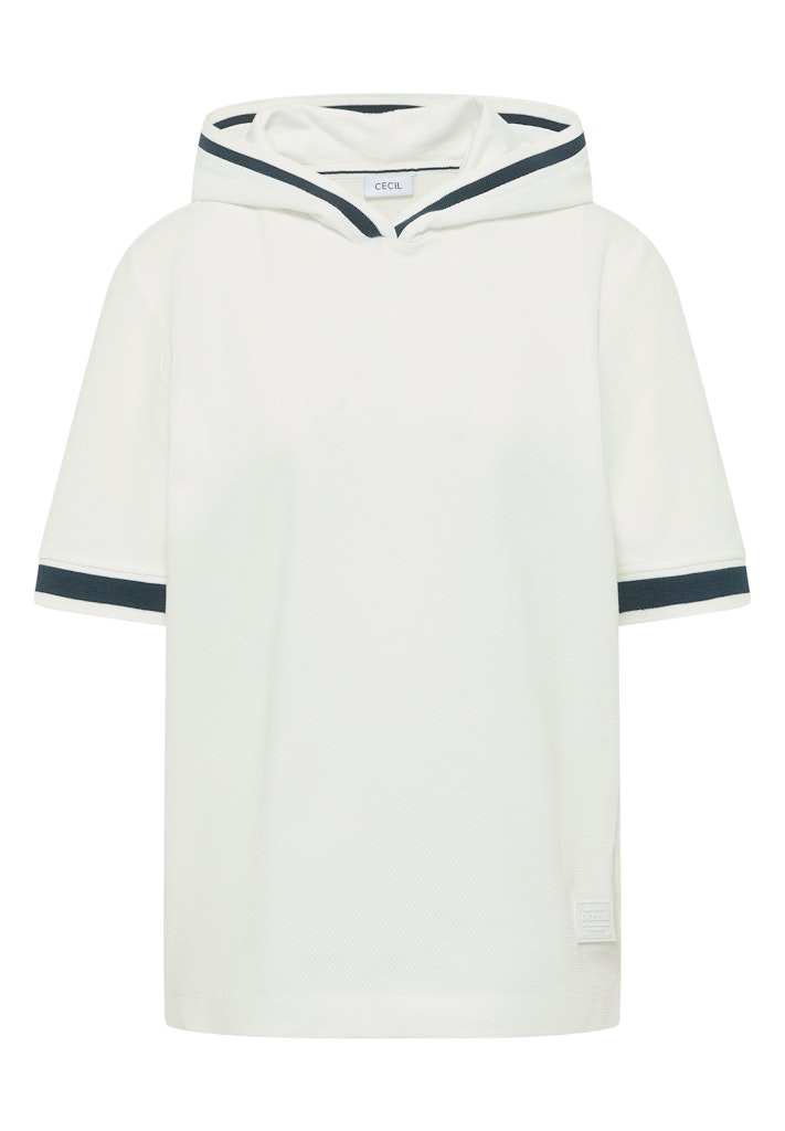 Das Hoodie Shirt von CECIL für Damen kombiniert sportiven Style mit hohem Tragekomfort. Die Kapuze mit Tunnelzug sowie Rippdetails und Kontraststreifen setzen moderne Akzente. Die kurzärmelige Form sorgt für sommerliche Leichtigkeit. Die Baumwollqualität mit Stretchanteil macht das Shirt angenehm zu tragen und vielseitig kombinierbar. Strukturshirt Sportiv Kapuze mit Tunnelzug Kurzarm Rippdetails und Kontraststreifen Material: 97% Baumwolle, 3% Elasthan