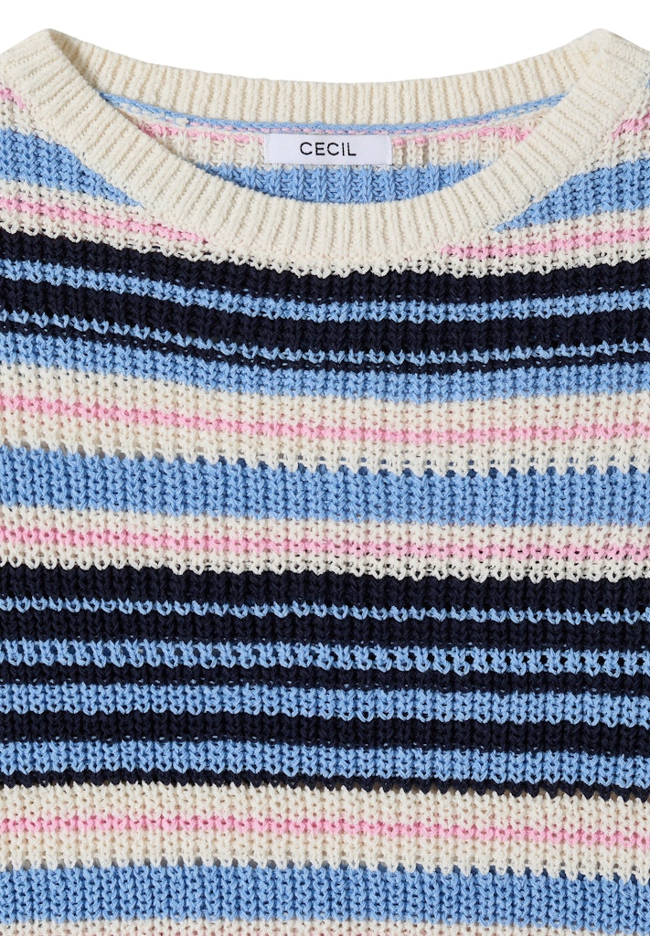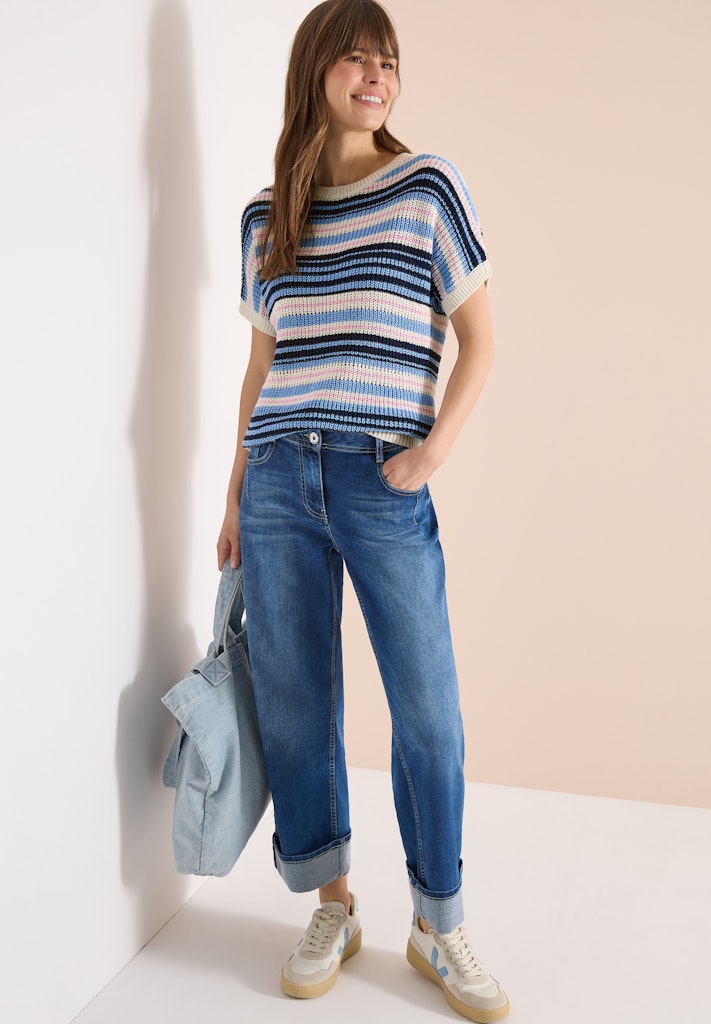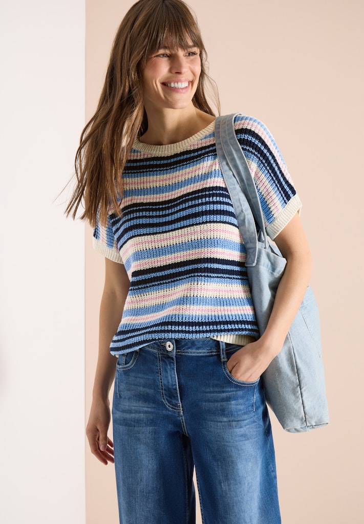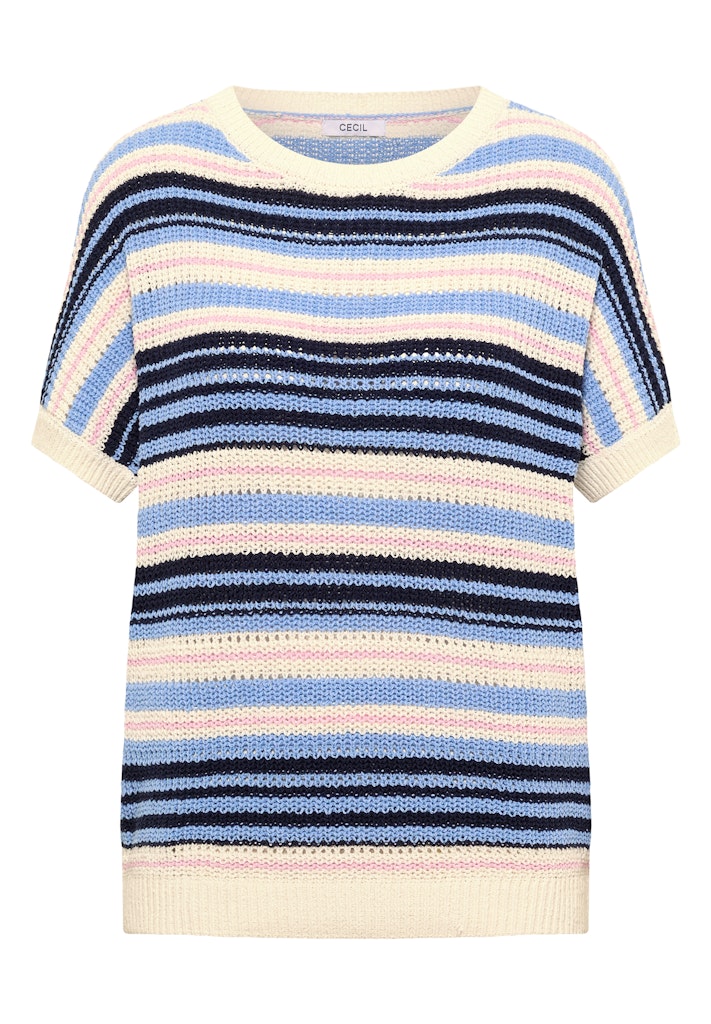 Dieser gestreifte Strickpullover von CECIL für Damen bringt mit seinen Multicolor-Streifen frische Akzente in deinen Casual-Look. Der U-Boot-Ausschnitt sorgt für eine feminine Note, während das Bändchengarn dem Design Struktur verleiht. Die Kurzarmform macht den Pullover besonders leicht und bequem. Perfekt für dich, wenn du einen Strickpullover suchst, der Farbe und Komfort vereint. Bändchengarn Pullover Casual U-Boot-Ausschnitt Kurzarm Multicolor Streifen Material: 60% Baumwolle, 40% Nylon