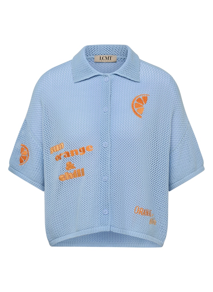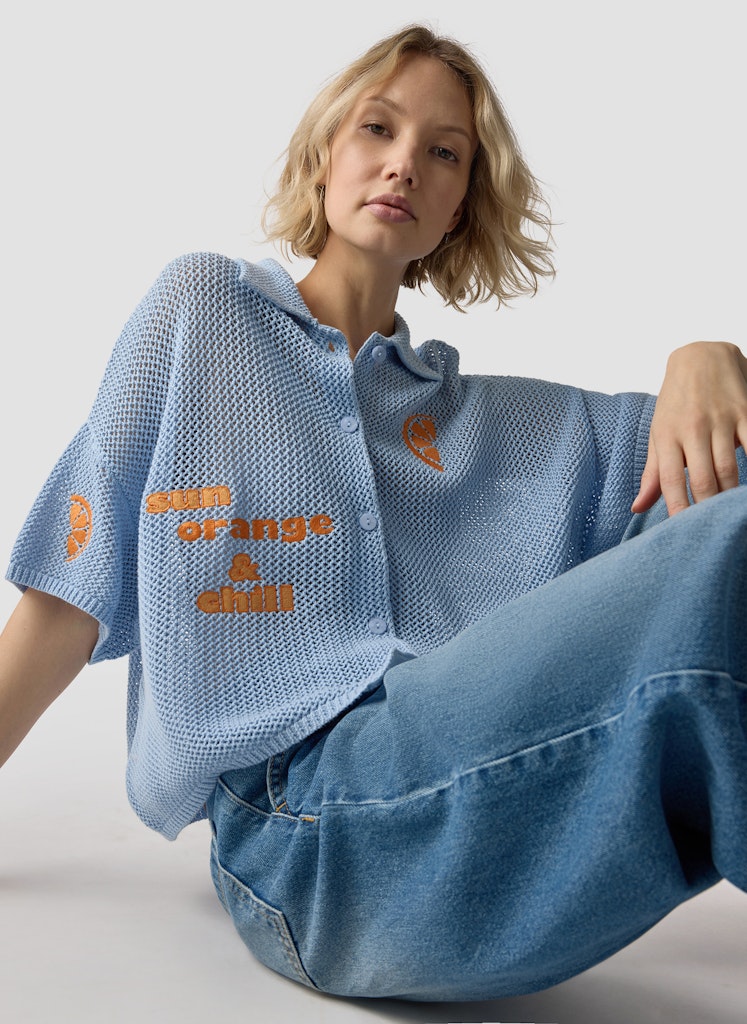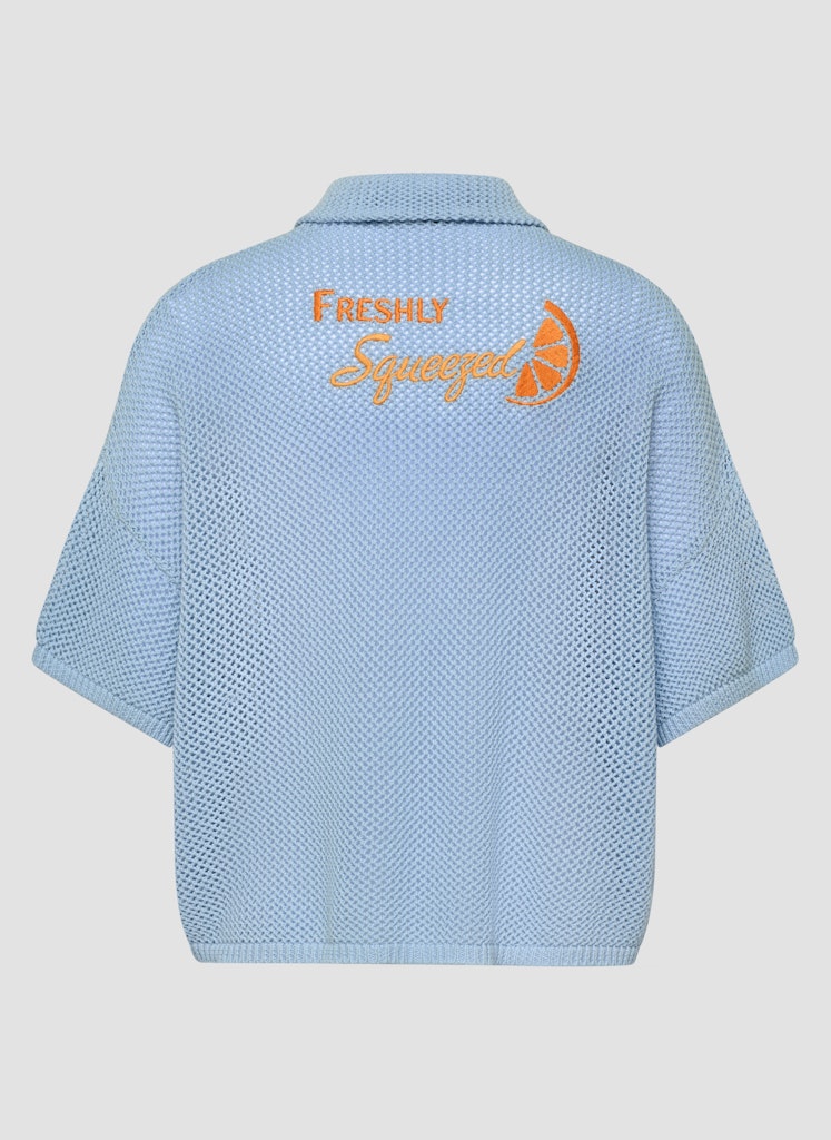 Die offene Ajourstruktur verleiht diesem Strickshirt eine luftige, moderne Optik. Stickdetails auf Vorder- und Rückseite setzen lebendige Akzente und unterstreichen den sportiven Look. Der Polokragen und die kurze Knopfleiste ergänzen das Design mit einer klassischen Note. Die lockere Passform sorgt für eine entspannte Silhouette. Reine Baumwolle bietet angenehmen Tragekomfort. Reine Baumwolle. Offene Ajourstruktur. Polokragen mit Knopfleiste. Stickdetails vorne und hinten. Locker fallende Form.