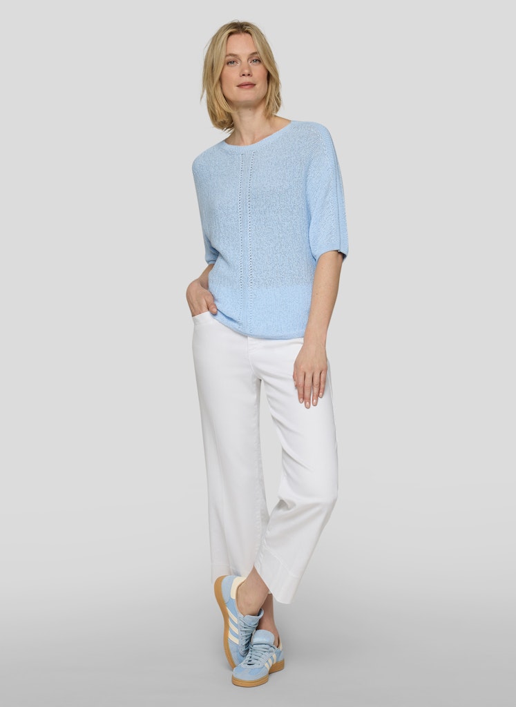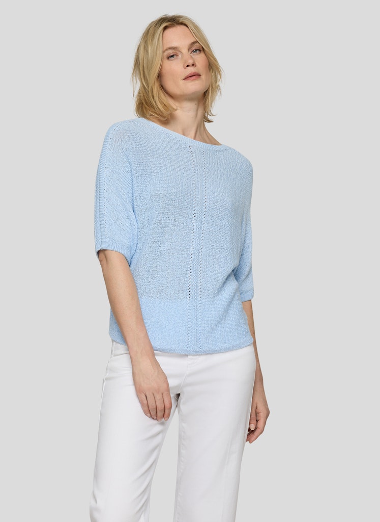 Der offene Ajour-Strick verleiht diesem Pullover eine luftige, sommerliche Ausstrahlung. Breite Streifen setzen einen lebendigen Akzent und betonen den lässigen Look. Die locker fallende Form mit überschnittenen Schultern sorgt für angenehmen Tragekomfort. Ein weicher Baumwollmix rundet das Modell ab und macht es zu einem unkomplizierten Begleiter für viele Gelegenheiten. Luftiger Ajourstrick. Breite Streifenoptik. Rundhalsausschnitt. Überschnittene Schultern. Baumwollmix mit Metallanteil.