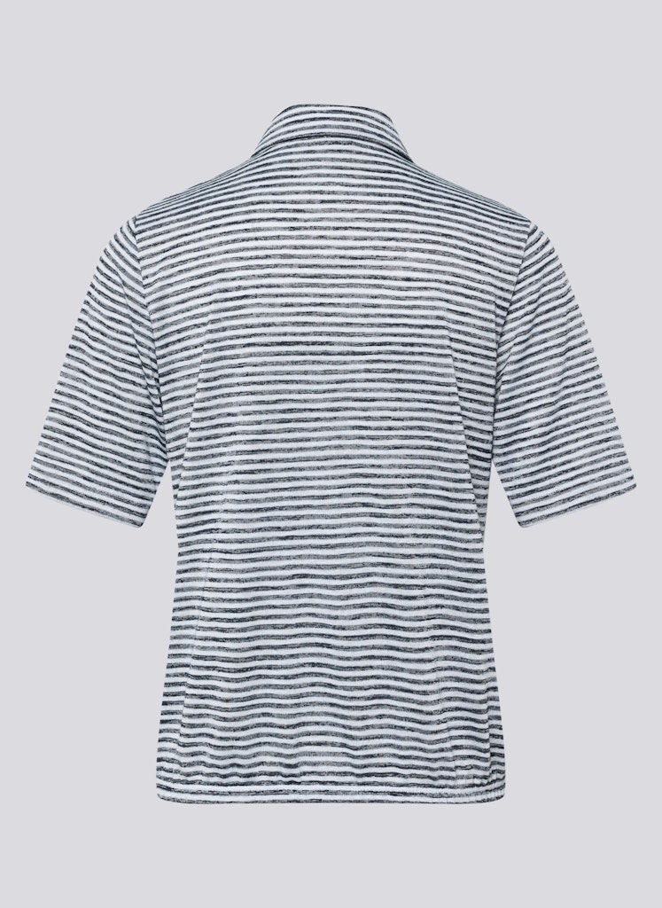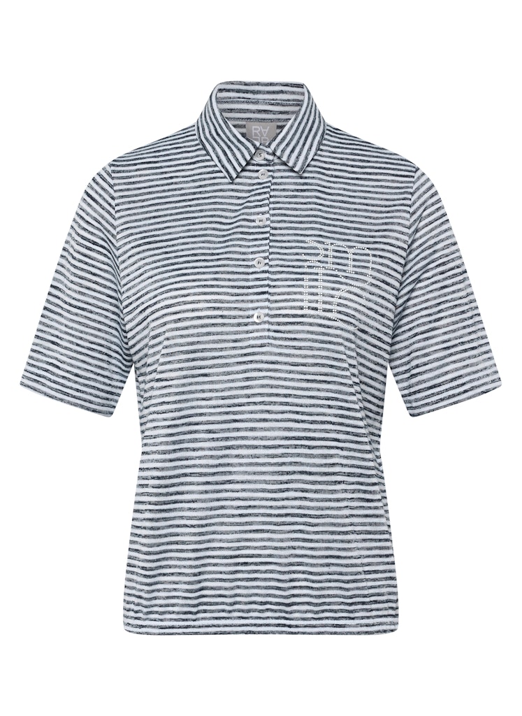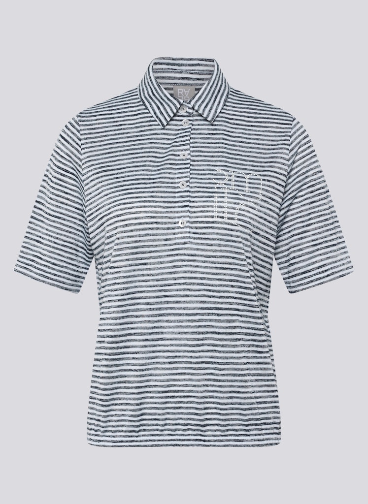 Das feine Streifenmuster verleiht dem Poloshirt eine dezente, sportliche Optik. Ein klassischer Polokragen mit kurzer Knopfleiste unterstreicht den lässigen Stil. Auf der Brust setzt ein rechteckiges Strassdetail in Taschenform einen funkelnden Akzent. Die bequeme, gerade Form trägt sich angenehm und eignet sich für vielseitige Alltagslooks. Die leichte Qualität fällt weich. Viskosemix. Feines Streifenmuster. Polokragen mit Knopfleiste. Strassdetail in Taschenoptik. Gerade Passform.
