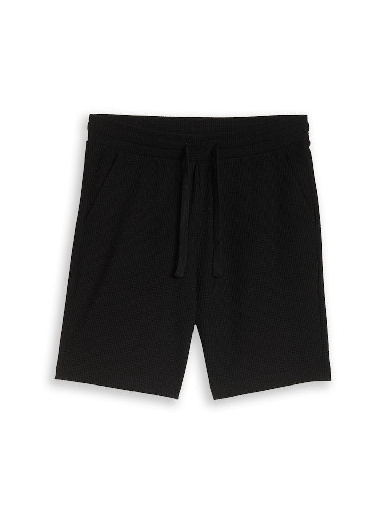 Shorts mit elastischem Bund und Kordelzug. Mit seitlichen Eingriffstaschen vorne und aufgesetzter Tasche hinten. Aus einem strukturierten Stoff in Waffel-Optik.