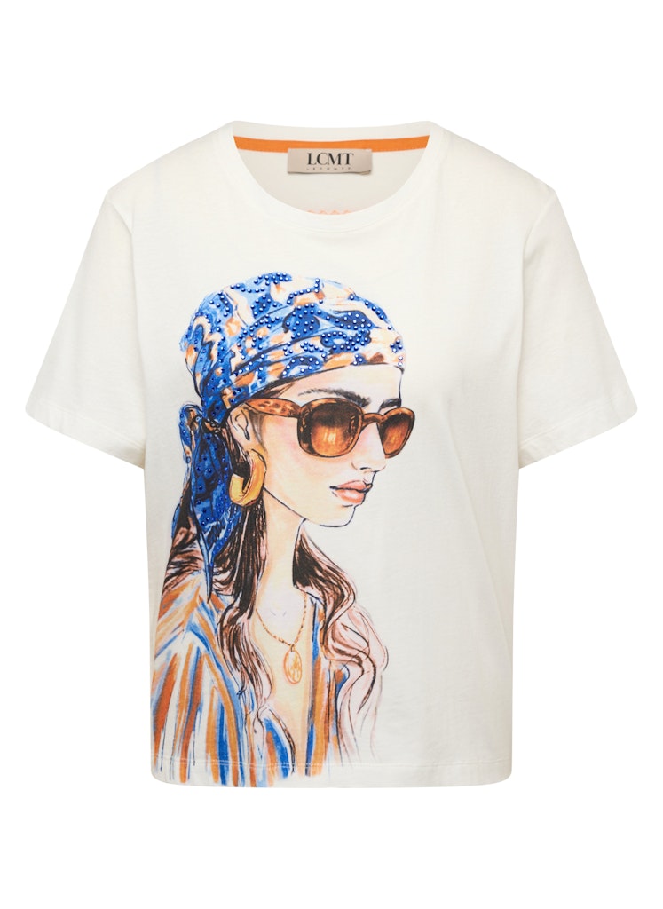 Der großflächige Fashionprint auf der Vorderseite verleiht diesem Shirt eine ausdrucksstarke, moderne Optik. Kleine Strassdetails setzen funkelnde Akzente und unterstreichen den besonderen Look. Ein klassischer Rundhalsausschnitt und kurze Ärmel sorgen für eine entspannte Silhouette. Auf der Rückseite ergänzt ein kleiner Print das Design. Reine Baumwolle bietet angenehmen Tragekomfort. Reine Baumwolle. Großer Frontprint. Strassdetails. Rundhalsausschnitt. Kleiner Rückenprint.