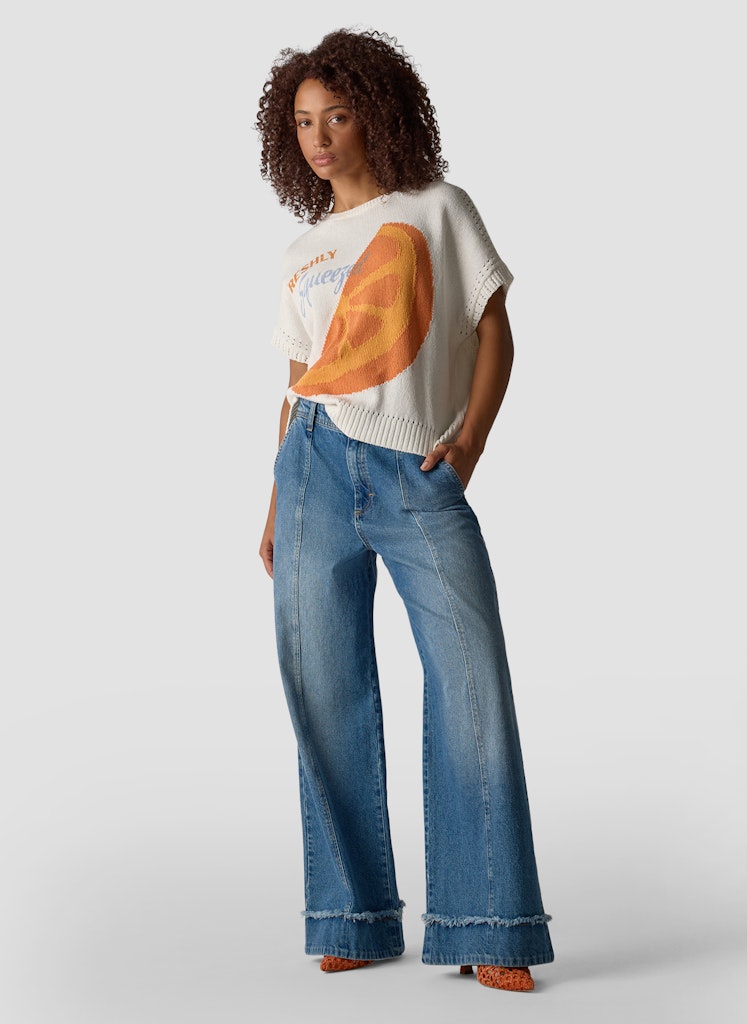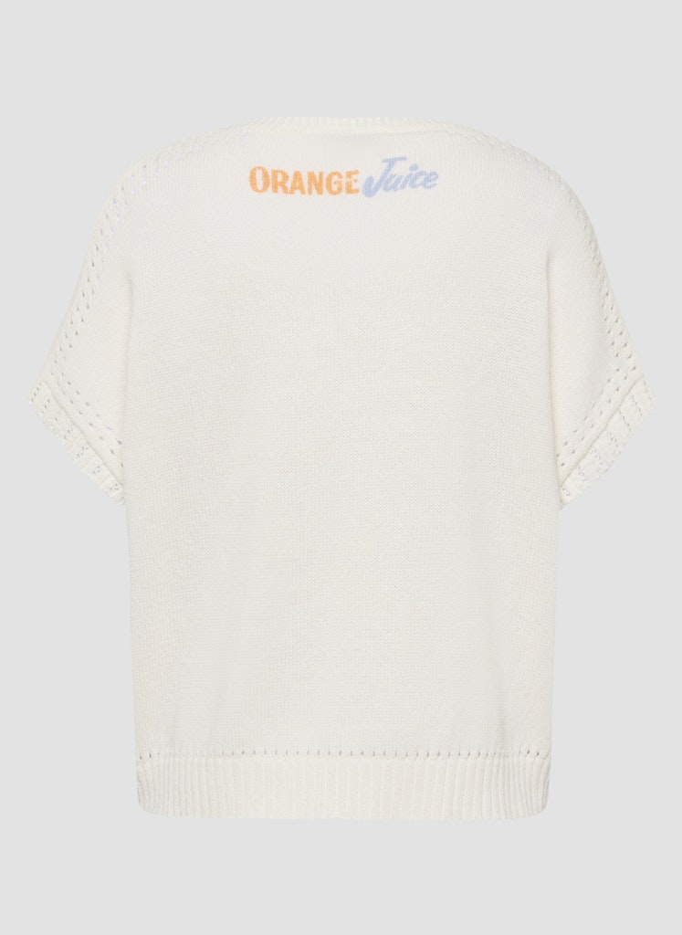 Das große Intarsienmotiv auf der Vorderseite verleiht diesem Pullover eine frische, sommerliche Ausstrahlung. Feine Ajourdetails entlang der Ärmel setzen zusätzliche Akzente und lockern die Strickoptik auf. Der Rundhalsausschnitt und die lockere Passform sorgen für eine entspannte Silhouette. Ein Baumwollmix macht das Modell angenehm zu tragen. Baumwollmix. Großes Intarsienmotiv. Ajourdetails an den Ärmeln. Rundhalsausschnitt. Locker fallende Form.