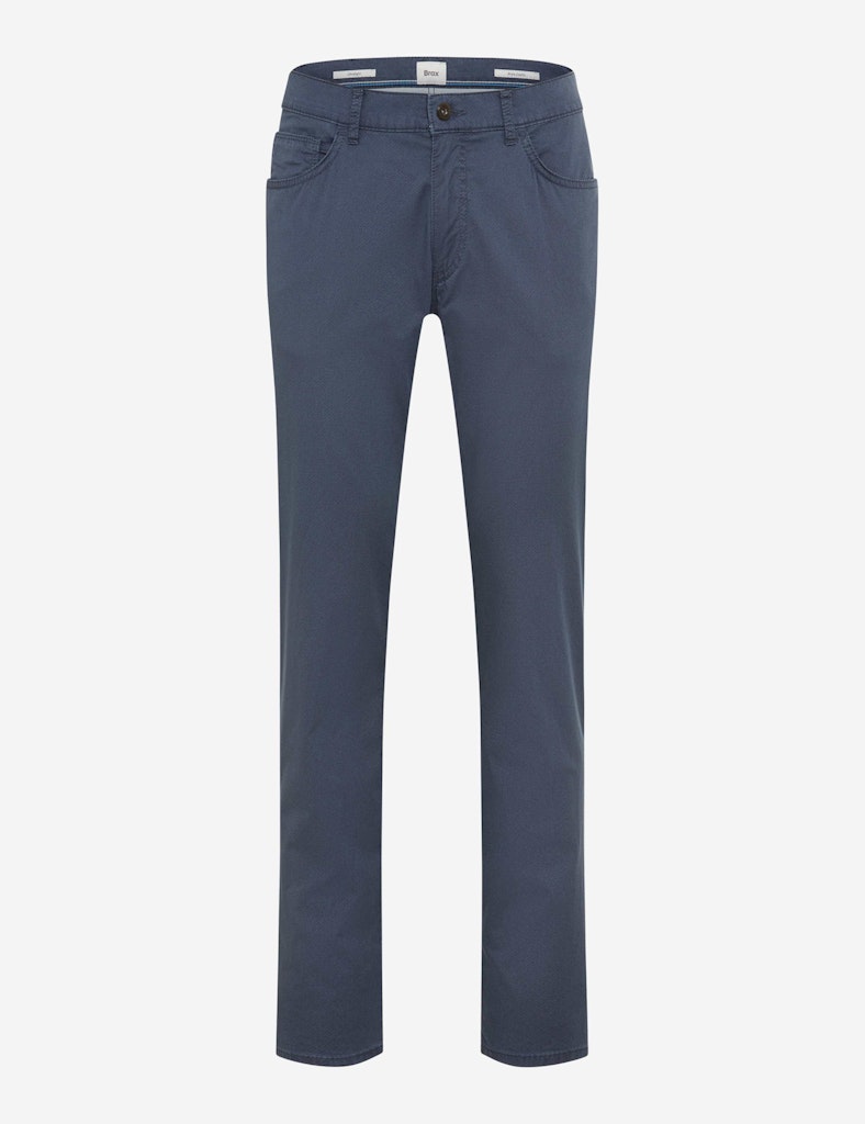Bereit für die kommende Frühjahr/Sommer-Saison? Diese Five-Pocket-Hose im STYLE CADIZ ist eine smarte Wahl für Herren, die Wert auf zeitgemäße Mode legen. Sie besticht durch ihre bewährte, gerade Silhouette im Straight Fit und sitzt dank der normalen Leibhöhe stets komfortabel. Der klassische Look mit aufgesetzten Gesäßtaschen und der unverzichtbaren Coinpocket wird durch ein feines Minimalprint-Muster modern aufgebrochen, wobei subtile Ziernieten und ein elegantes Hotfix-Motiv als geschmackvolle Details fungieren. Aber nicht nur die Optik stimmt, auch das Tragegefühl überzeugt auf ganzer Linie. Verantwortlich dafür ist ein hochwertiger Baumwollmix, der sich angenehm soft auf der Haut anfühlt und natürliche Atmungsaktivität mit notwendiger Bewegungsfreiheit verbindet. Ein echtes Highlight ist zudem die edle Satin-Verarbeitung, die dem Stoff einen geschmeidigen Griff und einen dezenten, hochwertigen Schimmer verleiht. Perfektioniert wird das Ganze durch Ultralight, die diese Hose zu einem absoluten Leichtgewicht macht und Ihnen gerade an warmen Tagen ein unbeschwertes Trageerlebnis garantiert.
