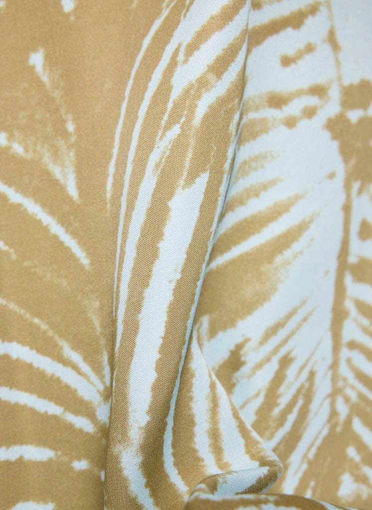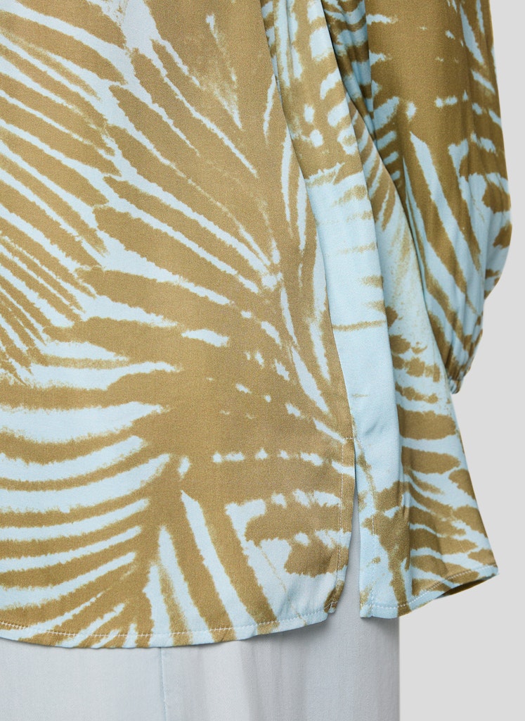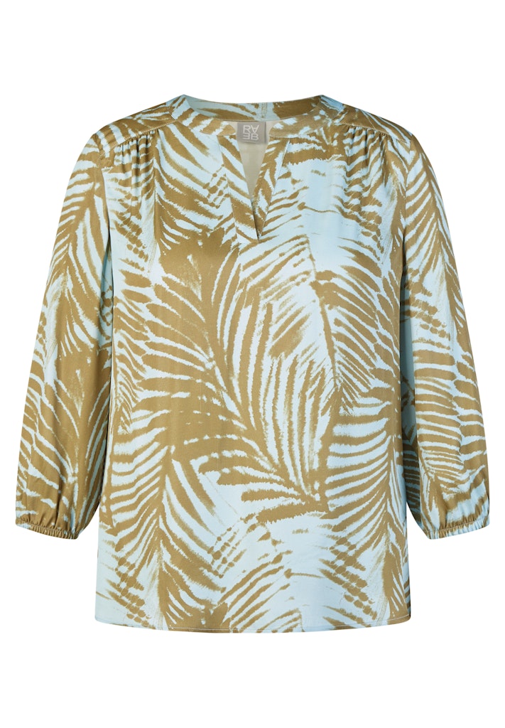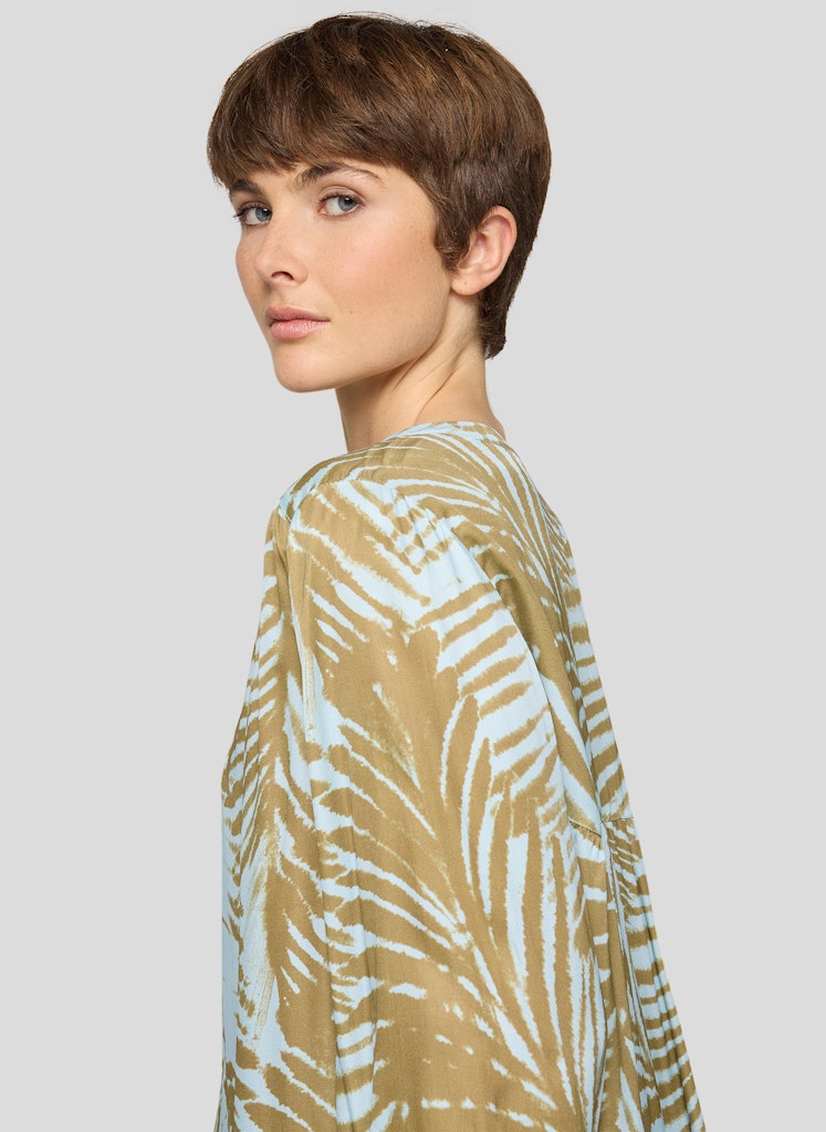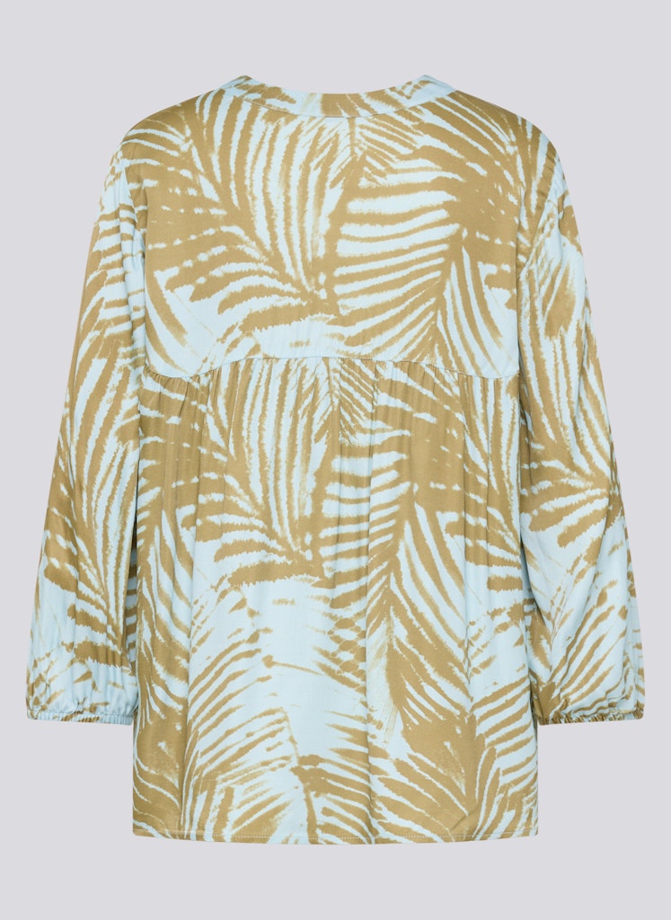 Der großflächige Palmenprint verleiht dieser Bluse eine lebendige, sommerliche Ausstrahlung. Der Tunika-Ausschnitt setzt eine feminine Linie und unterstreicht den lässigen Stil. Die locker geschnittene Form fällt leicht und bietet angenehme Bewegungsfreiheit. Seitliche Saumschlitze sorgen für zusätzlichen Komfort und einen entspannten Sitz. Reine Viskose. Großflächiger Blätterprint. Tunika-Ausschnitt. 3/4-Ärmel. Seitliche Saumschlitze.