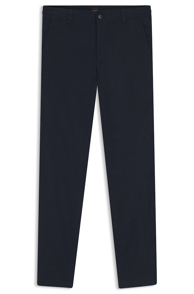 Mit einem elastischen hinteren Bund für eleganten Tragekomfort sind die BOSS Hose eine vielseitig kombinierbare Grundlage. Sommerlicher Leinen-Mix. Dezentes Logo-Detail.