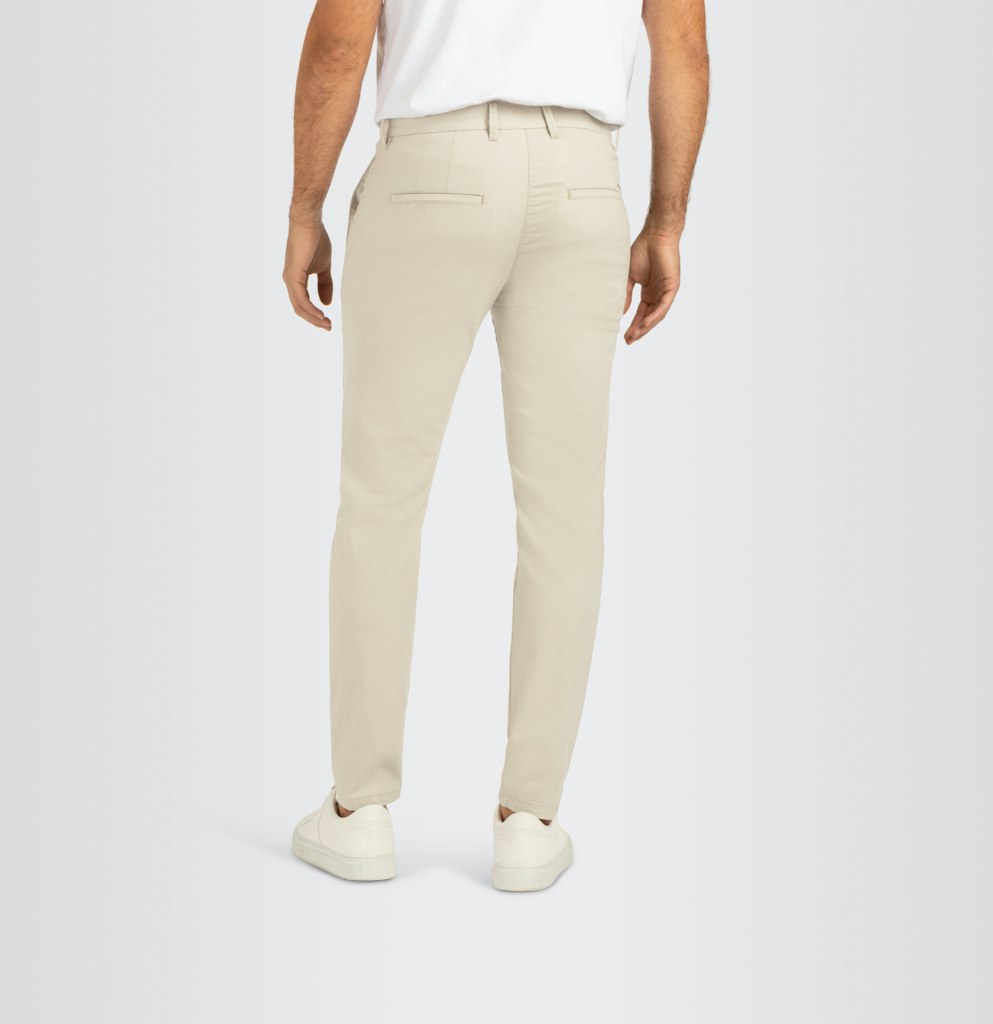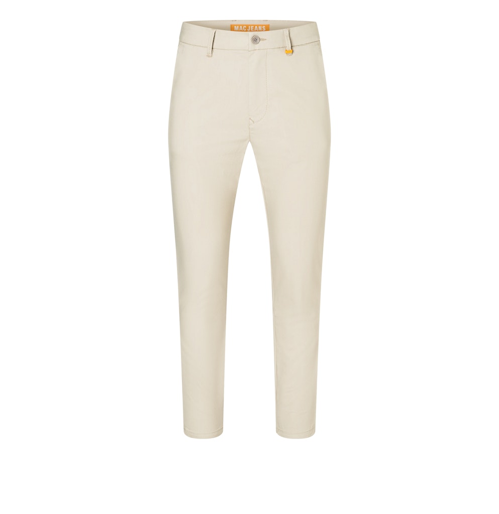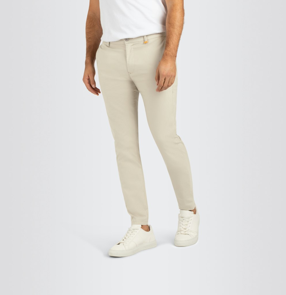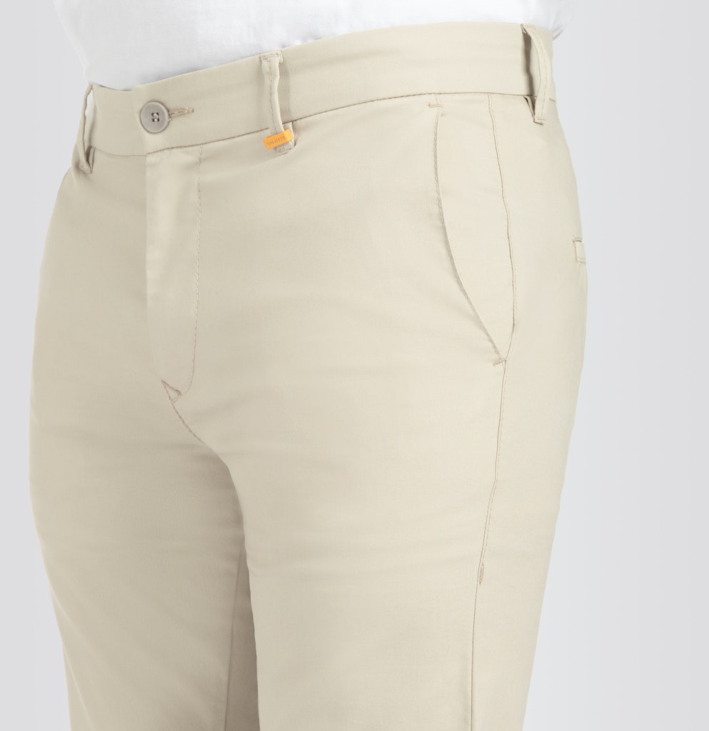 Tapered Fit, schmal zulaufendes Bein, bequemer Schnitt im Oberschenkel, gemäßigte Leibhöhe, Chino, Techno Twill, hochwertiges Cotton-Mischgewebe mit Stretch, leicht im Gewicht, cleane, edle Optik durch Nylon-Anteil, hoher Tragekomfort, temperaturausgleichend, über Better Cotton gesourcte Baumwolle, Das Model ist 1,85m groß und trägt die MAC Bundweite 33 und Länge 32, Fußweite bei Größe 33: 30cm