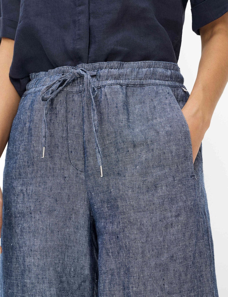 Trendstark und sommerlich leicht: Die Marlenehose im Style Farina verkörpert puren Lifestyle für die kommende Saison. Diese Damenhose inszeniert eine fließende, weite Silhouette im angesagten Wide Leg und bietet durch die normale Leibhöhe einen optimalen Sitz. Ergänzt wird die entspannte Form durch seitliche Einschubtaschen sowie einen komfortablen Schlupfbund, der durch einen dekorativen Bindegürtel akzentuiert wird und das Anziehen besonders unkompliziert gestaltet. Stilistisch setzt die Leinenhose auf eine cleane, trendbewusste Ästhetik, die pure Lässigkeit ausstrahlt. Ob elegant mit einer feinen Bluse oder casual mit einem modischem T-Shirt, kreieren Sie mühelos individuelle Looks für jeden Anlass. Den entscheidenden Wohlfühlfaktor liefert die Pure Linen-Qualität, die für ihre edle Struktur und Langlebigkeit geschätzt wird. Das reine Leinen garantiert durch seine natürliche Atmungsaktivität und den kühlenden Effekt ein luftiges Hautgefühl, das gerade bei hohen Temperaturen überzeugt. Erleben Sie mit dieser Hose die perfekte Symbiose aus Leichtigkeit und unbeschwerter Eleganz.